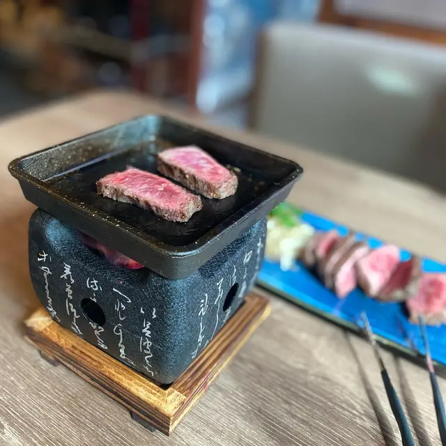 餐牌都好有心思, 可以睇到店名既用心呢間尖沙咀店岩岩開, 黎緊12月仲會係灣仔QRE開新分店. 新張期內有唔少優惠, 例如呢個串燒拼盤就係訂座送既. 串燒拼盤可揀汁燒/鹽燒🧂, 汁燒香甜惹味. 六式拼盤分別有牛舌、五花荔枝肉、雞肉、雞翼、和牛同羊肉. 其中厚切牛舌多汁軟腍, 而推介既五花荔枝肉有荔枝汁既香甜