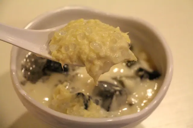 跟朋友聚會,聚會完意猶未盡,就一起去吃點小食及甜品再坐坐閒聊,選了去人氣甜品店〔甜姨姨〕,除了喜歡小店有傳統甜品外,更有其他小食、新式甜品及多款以豆腐花為主題的甜品。【六小寶】+【芒果特飲】(HK$88)很有日式便當盒的風格,除了有指定3款懷舊小食: 三色啫喱丶糖不甩及醬油糖心蛋外,更可以自選1款迷你牛角窩夫(口味: 港式奶醬/髒髒朱古力/草莓忌廉) 及自選2款街頭小食(吉列炸蝦/司華力腸/椒鹽炸雞/洋蔥圈/炸燒賣)及免費配選任何一杯沙冰一杯。【髒髒朱古力迷你牛角窩夫】滿滿的朱古力粉及朱古力醬,但又不是太甜,鬆軟的口感。【吉列炸蝦】蝦餅造型,蝦肉入口彈牙。【炸燒賣】即叫即炸,炸的香脆,外皮脆內裡軟,配合椒鹽味道有風味。〔懷舊小食系列〕【三色啫喱】是很多朋友仔,兒時去懷舊茶樓必點的彩色啫喱,正常發揮啫喱味道,重點插在啫喱上的小雨傘仔,受盡小朋友萬千寵愛的經典小玩意。【糖不甩】糖不甩配了很多花生,外皮亦夠軟糯。【醬油糖心蛋】有金黃液狀溏心,而且醬油很入味。【芒果特飲】有芒果蓉及芒果肉粒,還有西米露,椰汁和芒果布甸,而且很大杯,口裡充斥著滿滿的芒果味道。【尋榴敢】(HK$69)跟朋友都是榴槤控,這碗榴槤甜品除了有椰果丶涼粉丶綠茶果凍丶豆腐花丶奇亞籽及榴槤汁,這碗榴槤真是份量十足,入口啖啖濃郁粘身口感的榴槤肉,沒有苦澀味道,陣陣榴槤香,大大滿足了榴槤控的胃口。【木桶豆腐花】(HK$45) (製作需時,需要等15分鐘)即撞木桶豆腐花,用小木桶載著很可愛,打開蓋的豆腐花,熱騰騰保溫度極佳,每一口都非常滑,亦可以可以隨自己個人喜好加入紅糖。〔甜姨姨〕@auntiesweetcwb香港天后清風街13號地舖G/F, 13 Tsing Fung Street, Tin Hau, Hong Kong …Read More