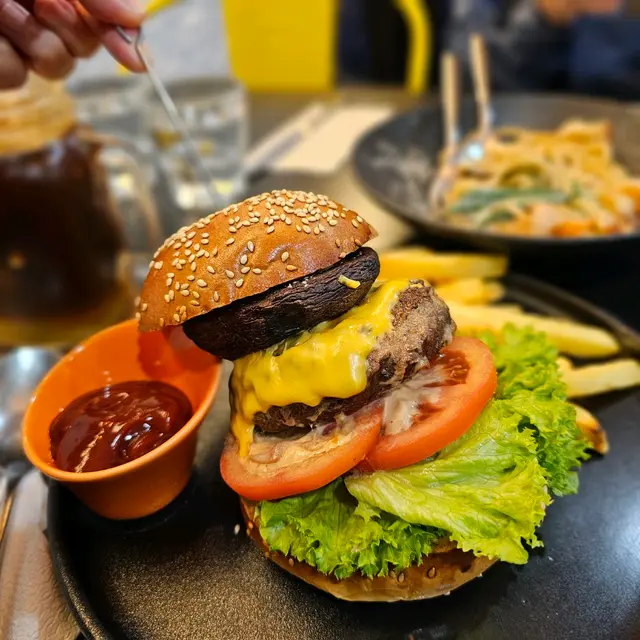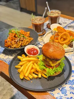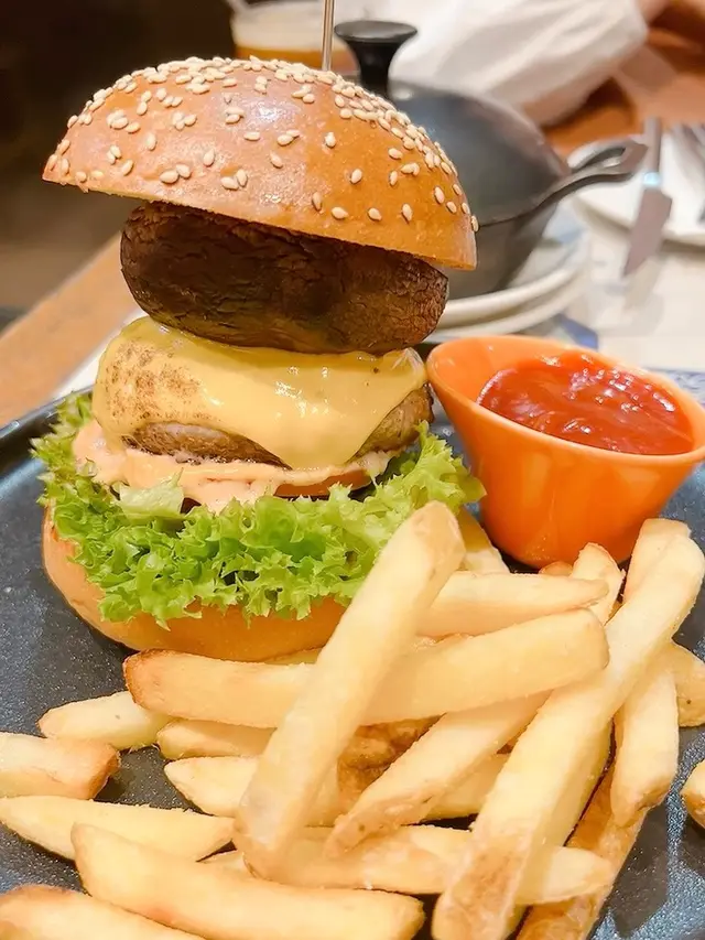 佢地甜品真係每次黎土瓜灣都要食最近仲出左靚靚打卡芭菲杯手打西冷牛肉原隻大蘑菇漢堡配薯條 $156勁多層勁大份既漢堡牛肉漢堡扒勁juicy一切開爆晒汁配上原隻大蘑菇真係大滿足自家製蒜香四川醬大蝦炒意大利粉 $138個醬好特別,帶有fusion既感覺微辣好開胃每條麵都吸晒汁勁惹味加上彈牙既大蝦充滿口感炸洋蔥圈 $72香脆外皮不油膩當餐前小食唔錯鳳梨可樂達芭菲杯 $96面層係一片法式層酥、非常酥化配上原片菠蘿後青蘋果好有層次感、打卡勁靚🥰內餡還有紅茶啫喱、慕斯、雪糕、餅乾脆脆味道酸甜,口感豐富茉莉花香橙黑咖啡 $56有茶香又有咖啡香仲有鮮橙香味好清新…Read More