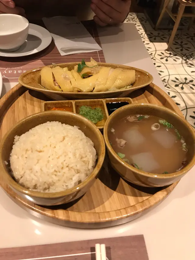 「沙嗲軒」位處酒店地庫,算得上叫做一間酒店附設餐廳,但由於並非處身尖沙咀、銅鑼灣或金鐘的五星級酒店,定位與坊間一般星馬菜餐廳差不多,價錢合理。話說回頭,除非食辣椒蟹、胡椒蝦,星馬菜一般唔會好貴。裝修非常簡約,甚至乎沒有任何星馬熱帶風情;始終附設於酒店內,餐枱之間相當寛敞,與其他星馬餐廳的相對擠迫始終有一些分別,用餐環境相當舒適。如果最近幾年去過星加坡旅遊,對於大熱手信鹹蛋黃薯片或者鹹蛋黃魚皮應該不會陌生,估唔到「沙嗲軒」也有得食黃金脆魚皮($50)。份量唔算好多,但作為頭盤小食就剛剛好。表面望過去鹹蛋黃蓉的份量唔多,但肯定處理得非常幼細,完全見不到結成粗粒狀的鹹蛋黃;香葉夠大塊、沒有碎濕濕,顏色呈現鮮墨綠色。果然是新鮮自家炮製,整體賣相遠勝廠房大量生產、預先包裝的鹹蛋黃魚皮。每一塊魚皮都熱辣辣兼脆卜卜,甚至有點燙口。味道滲著淡淡香葉香氣及適度的鹹蛋黃鹹香,並沒有包裝脆魚皮過量的鹹蛋黃油及偏鹹的毛病,好食到唔停得口。去星馬餐廳食飯,串燒沙嗲係指定動作,今次要了雞、豬沙嗲。根據多次食星馬沙嗲的經驗,是否採用靚雞肉或豬肉唔係重點,只要簡單保持雞有雞味、豬有豬味已經可以了,因為沙嗲肉類多數會用上濃郁醃料,而且星馬沙嗲串燒的靈魂及質素高低的分別盡在醬汁。「沙嗲軒」的沙嗲醬汁香而微辣、辣而不嗆喉,既有花生醬的香味、也有其他複雜的配料,就憑這個醬汁,已可勝人一籌。家鄉福建薄餅($75)是平時較少會嘗試的星州菜。薄餅較為濕身,質感有一點似北京填鴨的饃餅皮及印度麥餅的混合體。餡料是典型的星馬風味,有豬肉絲、蝦肉、蔬菜絲,混合了花生醬、蒜蓉、辣椒醬的馬來西亞風味醬汁,是相當典型的的娘惹菜式。醬汁味道雖然唔算濃郁,但份量實在相當多,掩蓋了其他餡料的味道;醬汁也欠缺明顯特色,比起之前的兩味頭盤小食失色。香港有避風塘炒或鹹蛋黃炒,星加坡則有麥皮牛油炒。麥皮牛油大蝦($318)是星加坡的獨特風味海鮮菜式。整碟菜式表面鋪滿麥皮,隨便夾起一隻開邊大蝦,同樣黏滿麥皮。開邊大蝦先泡油、再用牛油醬汁兜勻,之後加入麥皮便可以黏在開邊大蝦表面。咬一口首先嚐到麥皮的軟糯及甜膩,之後就是蝦肉的鹹味;雖然大蝦肉質鮮甜及爽口,但總是不太習慣表面的甜膩,而且又甜又鹹,有點怪怪的。招牌海南雞飯($142)是品評一間星馬餐廳是否出眾的標準菜式,基本上每一間在香港的星馬餐廳必定有這個出品。以價錢而論,相信是香港其中一碟最貴的海南雞飯了,當然,與君悅酒店咖啡廳尚有一段距離。君悅酒店咖啡廳的海南雞飯未食過,眼前這一碟已經十分吸引。雞油飯味道香濃,飯粒油潤軟糯。雞皮表面既光滑、又油潤,賣相吸引。雞肉又已經全部起骨,而且望落去件件肉質嫰滑,實在分不清楚是雞胸抑或是雞髀。食落有雞味,兼且肉質嫰滑、有彈性,莫非是新鮮雞?雖然價錢稍貴,但又未至於太過份,加上質素真的很好,值得一試。香辣通菜($78)顏色青綠,惹味香口,而且非常爽脆。本來認為相當好食,但原來碟㡳有很多油,越食越油膩,去到後來簡直沒法再食下去。嚤嚤喳喳($68)的椰奶糖水底非常香滑、稀稠度恰當,内裡的香芋粒爽腍而綿實、番薯粒則軟糯而黏身,而且兩者皆夠甜。馬六甲椰汁西米布甸($63)及不上嚤嚤喳喳。只採用椰汁味道較單薄、亦欠缺椰奶的滑溜。將一粒粒西米壓成布甸形狀實在過分結實,每一啖都只有西米,咀嚼起來很費勁。星加坡的馳名大眾飲品美祿恐龍($62)及美祿哥斯拉($68)不算出眾。冰塊太多,而且沒有加入淡奶,美祿有點稀如水、味道太淡。美祿恐龍的重點,原本是在沖調好的美祿飲品表面加上大量美祿粉,偏偏加得唔夠多;而且又用了闊口玻璃杯,浮在表面的美祿粉很容易溶在水裏,過了一段短時間,已經失去了用匙羹掏起美祿粉直接進食的暢快感。雖然美祿飲品失望,但大部分菜色確實美味;之前以為只不過是一間普通星馬餐廳,估唔到有意外驚喜。…Read More