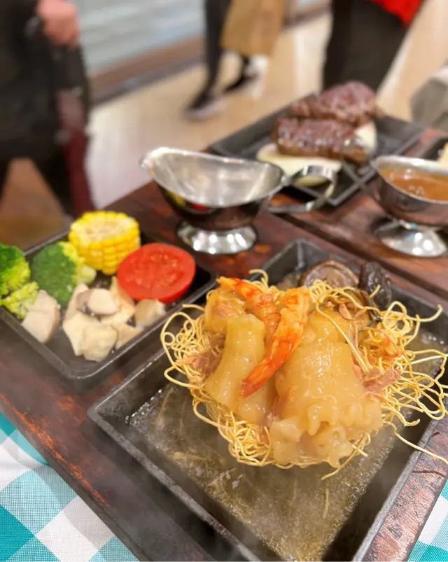一直以為永年只有車仔麵食,原來仲有懷舊鐵板餐😲,童年回憶即刻返晒嚟🌈~揀咗慢煮鐵板2人套餐($438),包兩份鐵板、湯/沙律、2份小食、2杯飲品~揀咗「美國安格斯封門柳」🥩同「招牌鐵板佛跳牆車仔麵」,賣相幾吸引~美國安格斯封門柳揀咗5成熟,醬汁要咗永年招牌辣椒汁🌶️,牛柳都算腍同少少辣嘅醬汁一齊食都幾夾,洋蔥🧅就再煎熟啲會更好~招牌鐵板佛跳牆車仔麵:好多靚材料,冬菇非常入味,蝦乾好鮮甜,花膠同金蠔都好高質,仲有金華火腿同乾瑤柱絲😋懷舊蝦多士食完唔會成口油、好香脆👍🏻芝士肉醬焗薯皮惹味又飽肚~牛油果薯仔蝦沙律沙律幾清新,食完好開胃🥰~招牌港式牛尾羅宋湯牛味濃郁,少少辣,懷舊嘅味道🕰️樽仔奶茶(+$9)&熱阿華田自家製嘅奶茶,係港式茶餐廳嘅味道🤤!…Read More