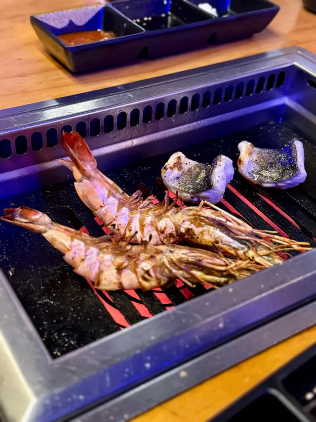 餐廳裝修好有格調,環境好有氣氛,好有日本居酒屋嘅感覺。任食榴槤,真係大滿足!質素都真心唔錯,,必食D24榴槤味濃,綿密軟糯,質感非常奶滑,好juicy!牛肉選項好多:有醬汁特選美國牛五花、美國安格斯封門柳、精修牛舌芯、澳洲和牛M7牛板腱、荔枝牛板腱串、醬汁羊蔥牛肉......我哋最鍾意厚切封門柳厚切,牛味濃郁,肉質非常幼嫩,好新鮮嘅感覺,口感一流。泰式生蝦配泰式醬汁,好新鮮,蝦肉晶瑩剔透,口感爽彈,搭配蒜香、辣椒和檸檬等調製嘅泰式醬汁,正!炸物好吸引,芝麻雞翼、一口芝士、鵝肝多士同春卷都好出色,好有驚喜。全部熱辣辣上台,脆卜卜,食到停唔到吖!鵝肝多士細細件燒到香脆入口滿滿鵝肝味!海鮮類嘅食材都好正,扇貝超大隻又新鮮,肉質鮮甜,香煎完好有蒜蓉牛油味,多汁爽口! 日式蒜蓉大虎蝦鮮甜彈牙連梅酒、紅白酒、啤酒、清酒....都係無限暢飲,爽!…Read More