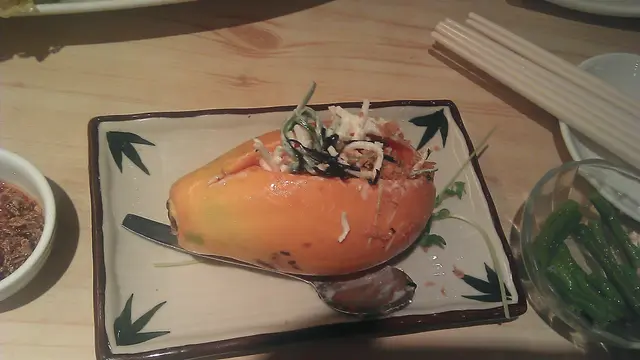 呢個木瓜沙律($16)幾乎每一張枱都會叫黎食,不過唔知點解我好唔好彩,隻木瓜特別細過人地嘅好多😂平平地過下口癮都幾好嘅。片皮鴨本身對呢個好大期望,不過食落真係還好,個人對西芹非常反感😅點解片皮鴨會配西芹嫁?食第一啖我朋友問我係咪啲鴨燶左,我自己唔係好覺,可能係因為啲醬好似燒烤醬搞到佢有錯覺。咕嚕肉呢個真心好食,好食過真嘅咕嚕肉,而且食落去啲肉感好真,但係又唔會似真咕嚕肉咁油膩。三樣嘢加埋$25x…Read More