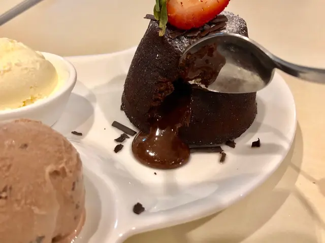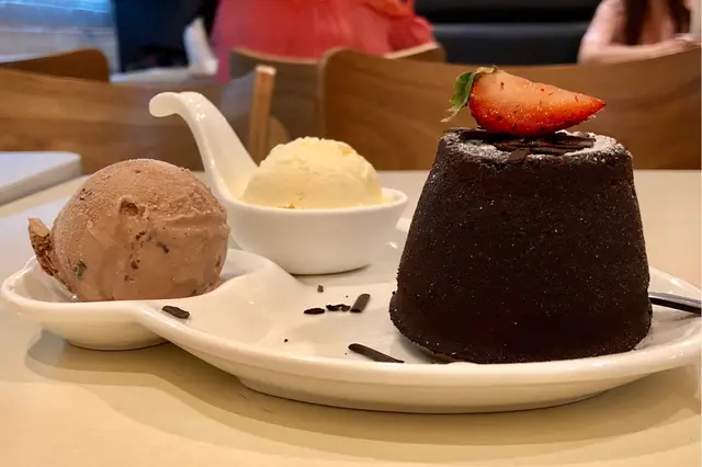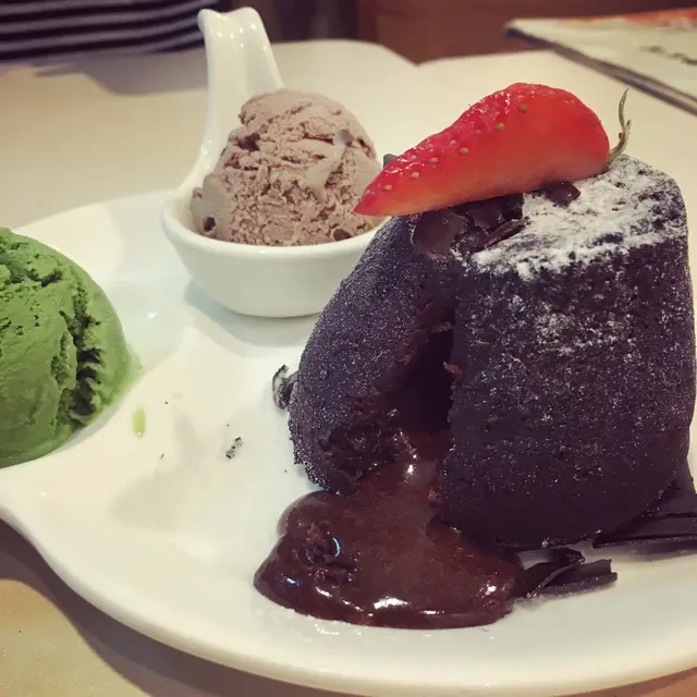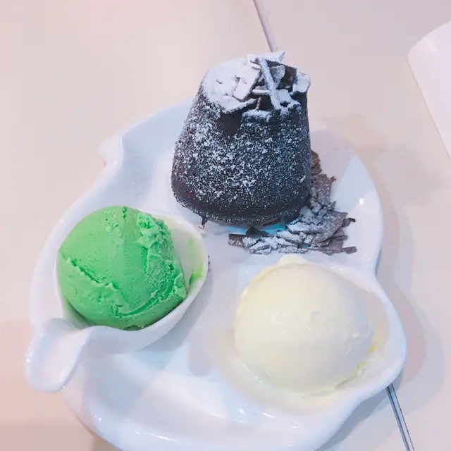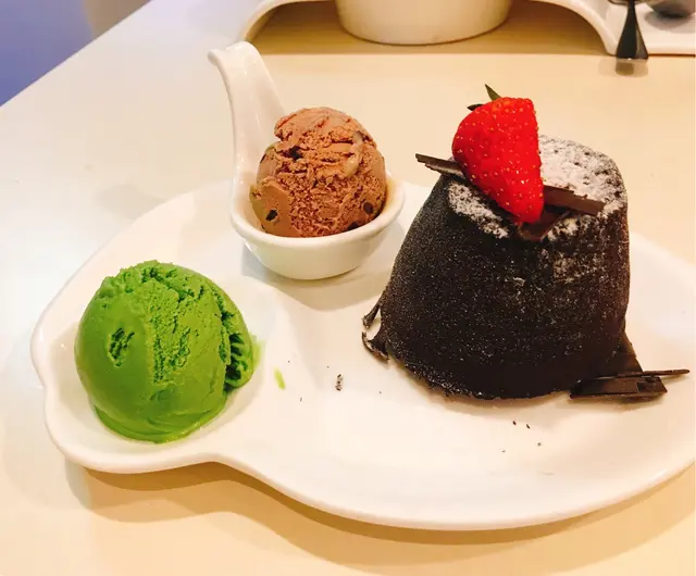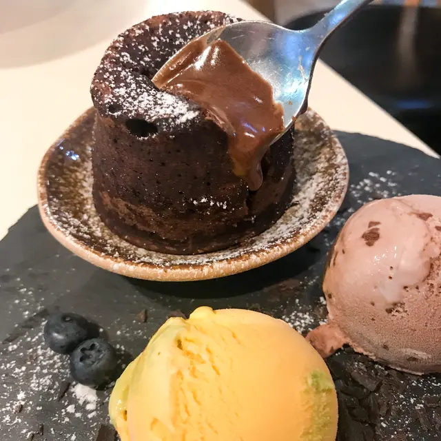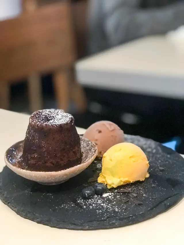 朱古力心太軟即叫即焗,配上兩球雪糕,有幾種味選擇,最後選了 芒果,朱古力。必開時朱古力漿如湧出,濃厚的朱古力不算膩,外面少少脆口入面鬆軟,兩者外脆內軟,兩種口感,唔同滋味感受配上雪糕一冷一熱,老闆仲話個朱古力漿煲自家調配,比出面濃的!