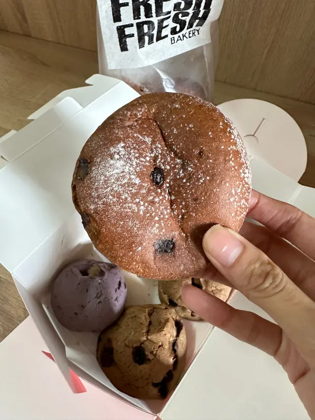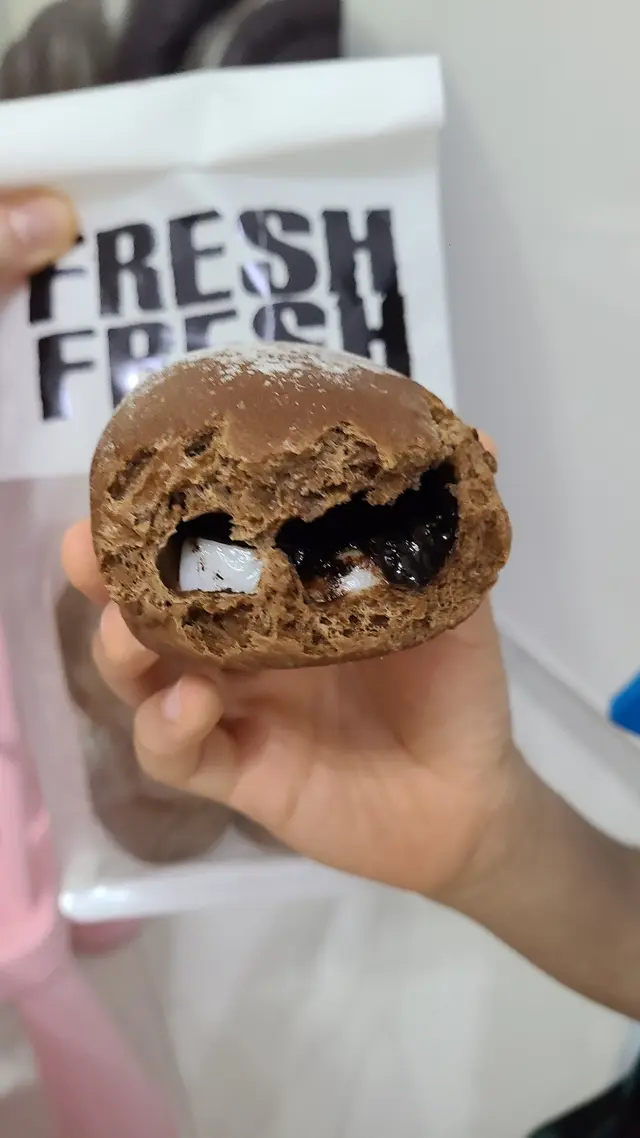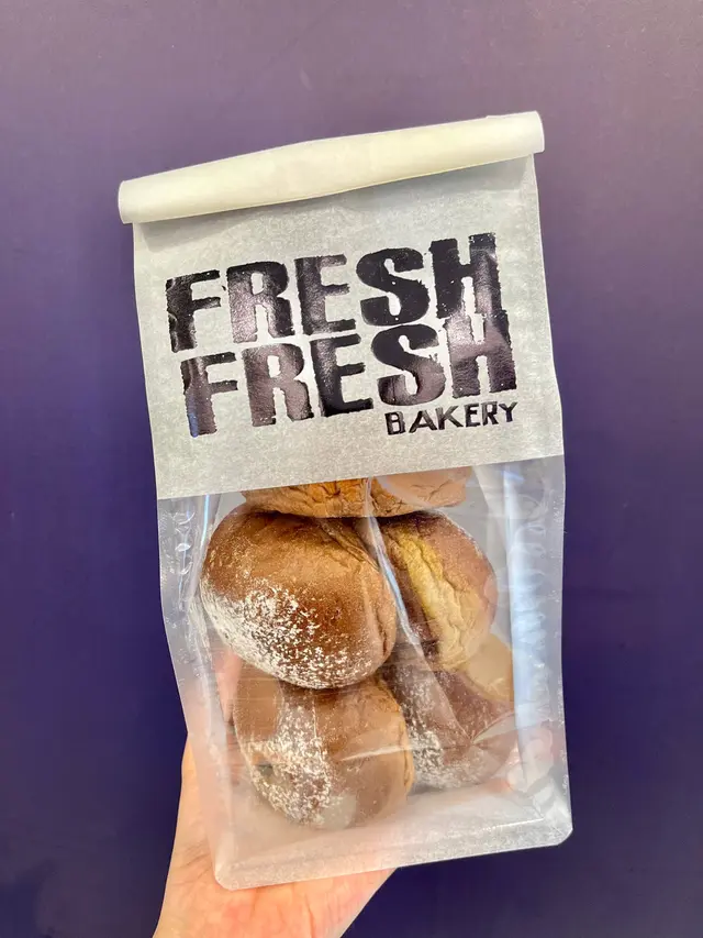 Fresh Fresh Bakery由曲奇餅做起,係細個嘅時候都曾經風靡所有少女🤣最近佢地大熱嘅麻糬product又令佢地成為新一年大熱食品。色彩繽紛又成價比高嘅麻糬QQ每次一出爐都吸引唔少人排隊買。店內除左一向熱賣嘅曲奇餅外,仲多左好多麵包。🌸麻糬波波🌸$28 (5件)一般嘅麻糬波波都係細細粒,呢間就大大舊,有啲似麵包。自己食完一次都成日回購做早餐。麵包食等出師傅用左好多時間去揉麵團,麵包十分鬆軟。平時自己一般食麻糬,因為好多時都會一舊舊,好難吞。但佢地嘅麻糬好軟糯🤩配埋濃厚嘅朱古力漿一齊食就岩岩好。因為料足又大份,基本上一舊都好夠飽,頂到成朝🦾🌸麻糬QQ🌸$7-9 (一粒)麻糬QQ係波波係細款版,外皮係曲奇脆皮。稍為可惜嘅係當日大熱嘅朱古力同M&M冇出爐,排左隊都食唔到🥲。自己買左大熱嘅開心果味、摩卡咖啡同紫薯味。開心果味極濃, 超值得買黎食