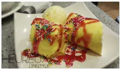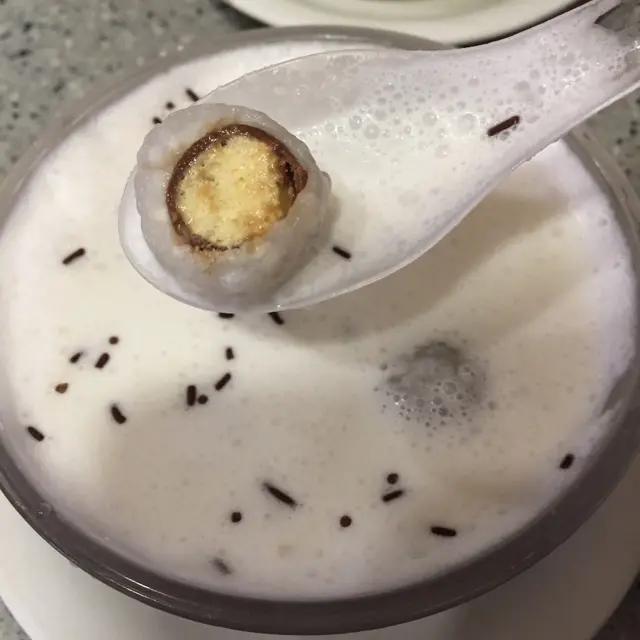 吃完晚飯,路經這甜品鋪,見到甜品都算有創意,便放棄了HE SHE EAT,轉投這間店鋪的懷抱。雖然店面面積非常細而且擠逼,但是吃個甜品時間不長,將就一下就可以。椰明珠 - 第一次嘗試麥提沙融入的糖水,外層用西米皮包住,口感偏硬,椰汁味道不足,口味偏淡,只是一般貨色。椰果椰香特飲 - 椰汁味很淡,椰果很有咬口,喝到的多是冰塊融化話的雪味,剩了大半杯沒喝。士多啤梨香蕉班戟 配 雲呢拿雪糕 - 甜到膩的班戟,一口咬下,滿口充斥著奶油忌廉,只有中間一小部分有生果,愛吃忌廉人士可能會愛上,但是我,實在欣賞不了。雖然每款甜品的價格不高,但是這樣的價錢還是可以找到更好的選擇。另外一提,服務態度是很好的...…Read More