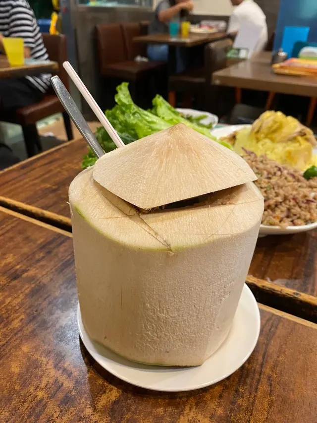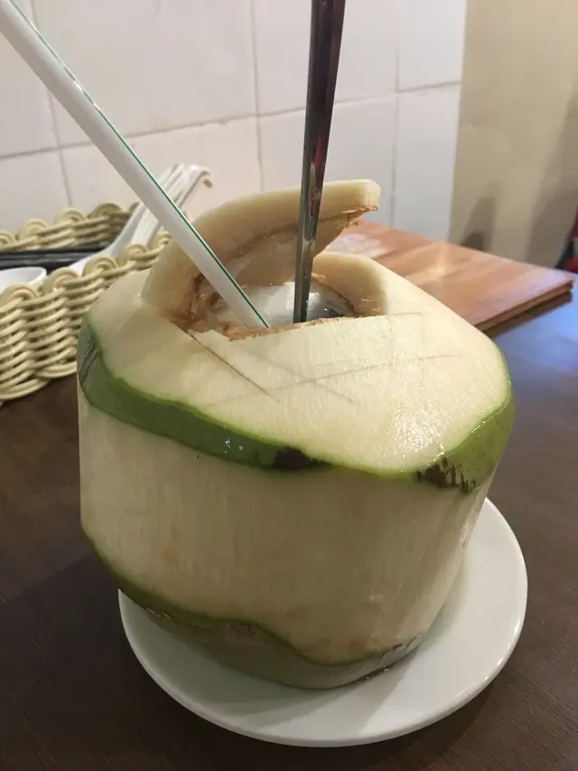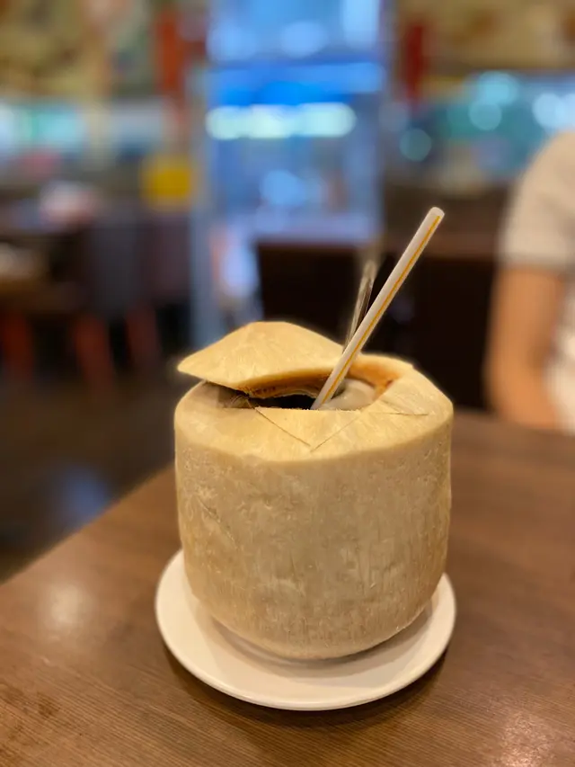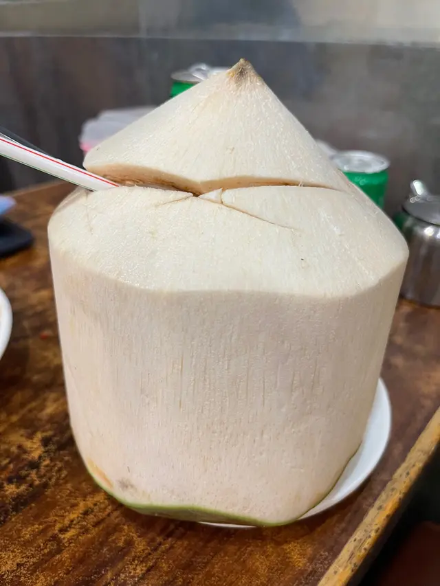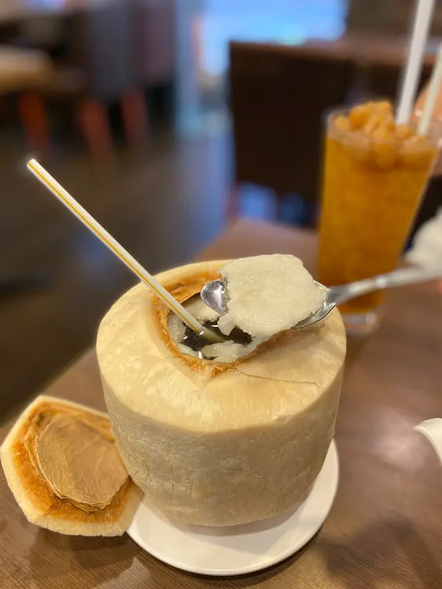 大個,打開蓋滿滿椰水,飲一口好鮮甜椰子香味龍眼冰