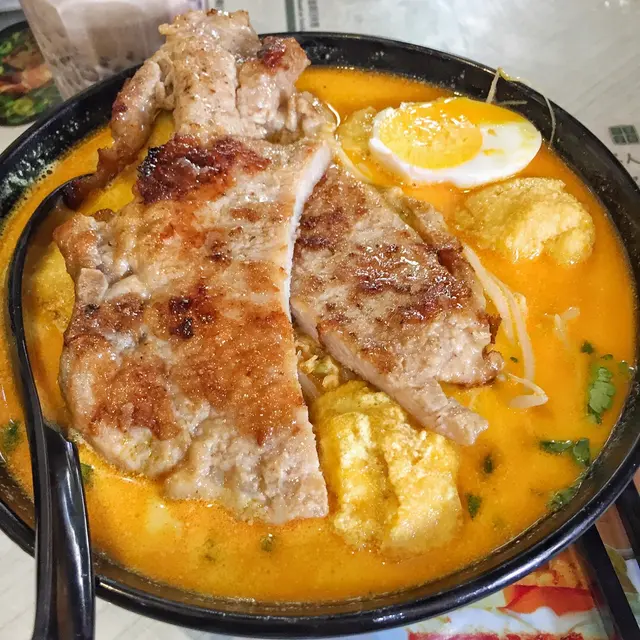 檳城喇沙湯米線(可選豬扒或肥牛) $42 一大碗, 價錢實惠好抵食, 份量亦好多。 實物比餐牌張sample賣相靚好多, 只限觀塘店才有的湯底。 喇沙湯底濃郁, 配米線食真係好好味, 同去東南亞試既味道差不多, 第一辣味夠,而且充滿椰香同花生味。 第二加入左芫茜, 把香氣再昇華, 做得幾出色下。 配料有半隻蛋, 幾塊豆卜, 豆吸收曬湯汁, 好惹味。 令人驚嘆的是那塊香煎大豬扒, 口感軟淋, 充滿肉汁, 沒有多餘的油脂,令人回味, 值得等待的美食。…Read More