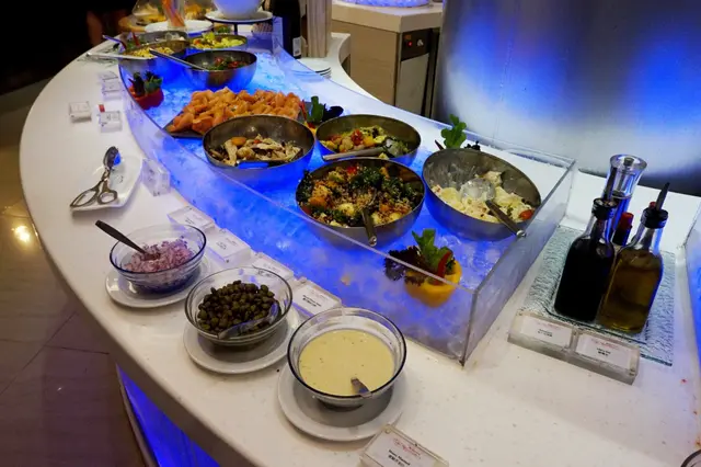 最近酒店有個優惠給機場員工,有朋友送兩張優惠券給我試食。全buffet 很齊全。沙律吧有各式新鮮沙律菜及其他配料,例如紅菜頭、菠蘿、粟米、椂柚粒(很清新)等等。另外仲有煙三文魚、薯仔沙律、磨菇等等。食物夠新鮮,選擇算多。有凍海鮮,例如蝦、青口、硯,仲有壽司區和芝士區。賣相不錯,新鮮。熱盤方面有一般選擇,例如蒸蛋、春卷、蒸魚、紅酒燴牛尾、咖哩類等等。因為太多人在熱盤區搵食,所以沒有認真過去那邊取食物。另外有肉車、海南雞飯、日式拉麵,因為是廚師派發,感覺比較良好。甜品有movenpick 雪糕、窩夫、各式蛋糕、芝麻糊、麵包布丁之類。廚師𢳂雪糕要排長龍是常識吧。長者比較喜歡芝麻糊夠地道,而雪糕一定是年青人的主打。由於剛巧遇到有幾個本地旅行團ssss,餐廳充滿人流,食物補充都算快,但真的要用‘’搶‘’來形容取食物過程。比較斯文者便要多加考慮。幸好餐廳方面將團體坐位跟散客分開,尚算貼心。用優惠券價錢來到機場食buffet是可以接受的,但如果用正價或只有少量折扣,就不了。…Read More