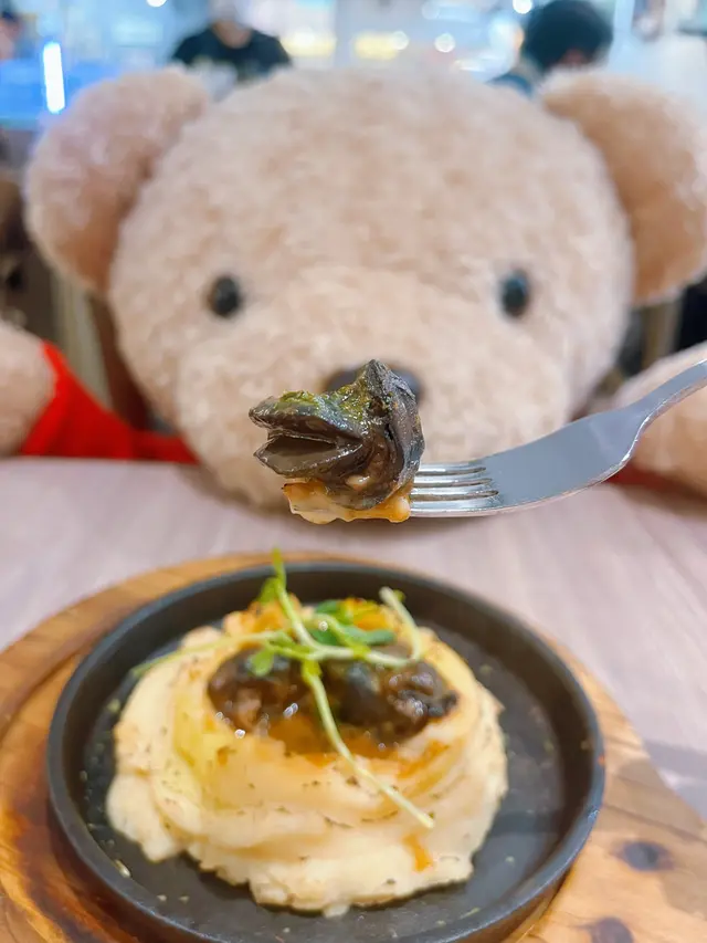 🐻熊仔主題餐廳|大小朋友👨👩👧👦情侶👩🏻🤝👨🏼必到🤗超可愛熊仔🐻伴食|高質抵食二人餐🍽️今次豬女生日,當然要帶俾佢一個難忘既回憶啦🤗知道佢最鍾意可愛既公仔,一於帶佢嚟到哩間大人細佬👨👩👧👦都啱曬既熊仔🐻主題餐廳‼️一到店門口已有一隻超巨型既熊熊,大家可以坐喺熊熊身旁打卡影相😍餐廳每張枱上面都有隻小熊陪你食野。而且無論牆紙、牆櫃都擺放住大大小小既熊仔😍好有氣質🥰餐廳食物水準超高🥹仲要咁靚咁可愛!大家一定一定要嚟🌸值得一讚既係店員服務態度超熱情有禮,我地都覺得自己好似去咗主題樂園咁溫馨🥰平時太忙唔夠時間去主題樂園都好,嚟哩度就啱曬😆真係有重賓至如歸既感覺,超開心超有童真🥹🌹我地當日叫咗一個299二人套餐,套餐包括餐湯、餐包、前菜、兩道主菜、甜品及飲品🤗性價比超高😍✨二人歐陸式濃湯當日既餐湯係南瓜薯仔魚湯🐟餐湯營養搭配均衡,香濃嘅魚味配上南瓜香味,濃稠足料既西式湯🍲好用心製作😋✨牛油蒜蓉法包蒜蓉包好香蒜蓉味,配上法包烤得香脆可口,超鬆化😆✨法式香草牛油焗田螺必點前菜‼️幼滑香濃既蒜蓉配上爽滑彈牙既田螺😍滋味無窮,醬汁好入味,田螺好大粒🤩估唔到咁高質既菜式哩度有齊曬🥰必點✨✨✨✨✨✨蜂蜜Bbq燒豬仔骨非常推薦大家點哩一道菜,豬仔骨足足有兩大條,燒得好香,外皮脆脆的,肉質一絲絲一啲都唔乾柴,配上燒烤醬同蜂蜜,甜甜的,好惹味🤩跟餐仲有薯條同埋沙律😍份量好足,大家一定要試吓🤗必點✨✨✨✨✨✨意大利墨汁魷魚意粉 好濃稠嘅墨魚汁,味道甜甜地,香蒜味好香濃,魷魚好彈牙,鍾意食墨魚汁意粉嘅都可以試吓😆✨自家製心太軟 +$19🍫呢度嘅心太軟好出名,差唔多個個入嚟嘅客人都會選擇,惠顧套餐加$19就可以轉心太軟😍心太軟製作時間約15分鐘,外脆內軟,一切下去,朱古力醬瞬間爆發出來‼️仲有忌廉同埋芒果作伴🤩大家記得要趁熱食啊😋必點✨✨✨✨✨✨雪糕套餐會送兩球雪糕,我哋另一球雪糕就轉咗做心太軟,剩低一球雪糕,我哋選擇咗豆腐味🥰豆腐好香濃,雪糕好軟滑😋😆跟餐會送兩杯飲品✨凍檸水✨凍華田✨玫瑰法式燉蛋白 $25呢個玫瑰法式燉蛋白,大家一定要試吓!滿滿嘅儀式感,鋪滿玫瑰乾花🌹充滿濃濃嘅玫瑰花香!法式燉蛋白,上層有焦糖脆脆的,配上嫩滑的蛋白😋簡直係完美😍價錢仲要唔貴👍🏻必點✨✨✨✨✨食物✨✨✨✨✨環境✨✨✨✨✨衛生✨✨✨✨✨價錢✨✨✨✨✨🏠 熊小館 (將軍澳)將軍澳貿業路8號新都城中心二期2樓2086-2087號舖…Read More