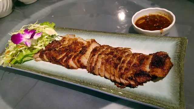 泰式燒豬頸肉 4.5/5好食,燒得好香,又唔會太乾,配上辣醬食一流。泰式雞肉生菜包 4/5生菜新鮮,雞肉碎份量足夠,由芫荽洋蔥炒乾而成。泰式醉貓豬肉炒河 4.5/5原本以為係肉片,但原來係肉碎,炒得好香,有穫氣,嗰啲豆粒清爽甘甜,寬河粉又爽又滑,辣得過嚟。