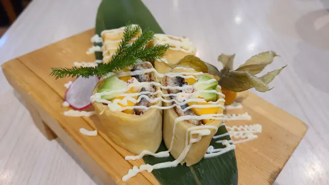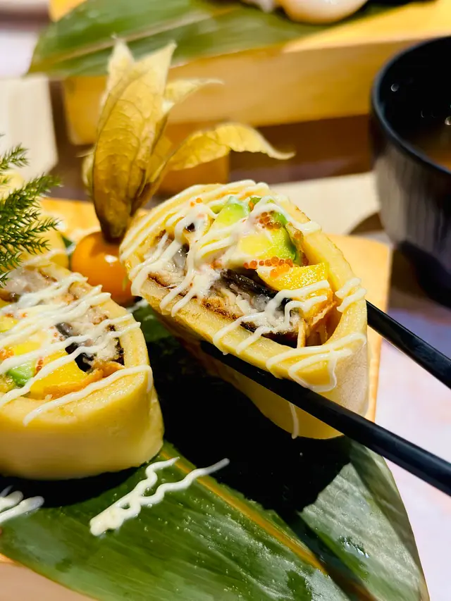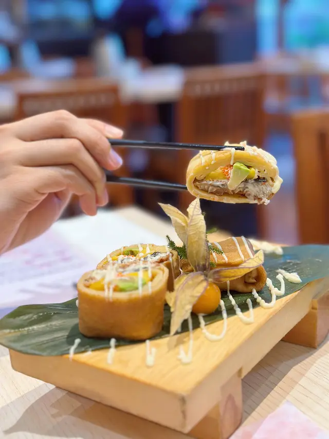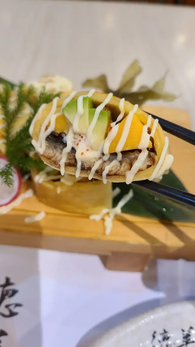 Weekday 嘅尖沙咀人來人往,遊客特別多。天氣熱辣辣,😙好想食日本菜,尖沙咀商場內嘅日式料理一定唔平,所以嚟左呢到,加上之前係紅磡及大埔食過,🩷質素有保證。上到五樓就已經進入餐廳範圍,雖然QR code 點餐,但侍應服務及反應都好快👍🏻🍣洋風鰻魚班戟$64網上好多人推介,估唔到咁有驚喜。用班戟皮包住鰻魚、牛油果、玉子,配搭新鮮味道一流😍😍🍣三色魚生飯味增湯+沙律 $136油甘魚,厚切帶子及三文魚,款款新鮮,份量十足,配上溫泉蛋,好開胃醒神😘🍣晚市定食壽司定食配牛肉烏冬$172每件手握壽司都完全體現司傅嘅手勢👏🏻👏🏻醋飯比例剛好,非常正宗,絕對唔會將價就貨。加上一碗牛肉手打烏冬,雖然係配角,但用料認真。最後送上每人一客甜品:日式三色糕,有紅豆、椰汁及抹茶,味道好突出,值得再encore…查看更多