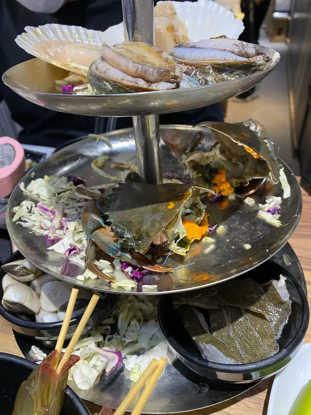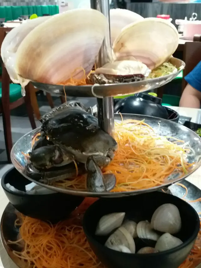 天氣轉涼,同朋友約食粥底火鍋,有朋友就提議來新蒲崗試試這家粥底火鍋店。自己食粥底火鍋的次數不多,這是我所試過的第三家店啊~~在openrice book位book了6pm,到達時,店內沒什麼客人,店員只是問了聲有否訂位就讓我入座了 (後來於openrice顯示我沒有出席訂座:()。此店的價錢與我試過的其他粥底火鍋價錢相若,$198/位再收加一,包7款海鮮﹑6款自選火鍋配料。至於3款時蔬,是粟米﹑南瓜粒及芋頭粒,是最後加入粥底吃的~~不夠食的話,可加錢額外加配料。海鮮有蟶子﹑鮑魚﹑基圍蝦﹑肉蟹﹑沙白﹑蜆及多寶魚,一上桌時就見到鮑魚及基圍蝦好生猛,仍然會郁!!可按食物的烹煮時間去計時。先灼肉蟹,膏的份量還算可以,味道鮮甜,但粥水未能滲入膏香~~蝦的肉質爽口又甜!!鮑魚的烹煮時間恰好,質感鮮嫩又彈牙!!沙白及蜆乾淨無沙~~店員見我們吃得較慢,所以就沒讓我們逐樣食物計時烹煮,幫我們將魚及沙白&蜆一次過倒入鍋內煮,魚煮得過火了一點,魚肉都散開了。自選配料有美國肥牛﹑黑毛豬腩片﹑粟米﹑手打墨魚滑﹑牛筋丸及醬爆瀨尿牛丸。肥牛不是雪花肥牛,肥油都集中在一起,豬腩片同樣略肥,兩款肉都一般。墨魚滑的份量都有大半碗,有墨魚香,都OK!兩款丸的質素一般,不算特別香牛味。最後就加入粥膽,再將粟米﹑南瓜粒及芋頭粒加到粥裡,還有豬油渣﹑菜脯及冬菜 (走青),加入蛋漿拌勻即成。店員不會主動留意是否需要加粥水,到我們想加水時,已開始有少少燶底了。所以粥有微微焦味,海鮮甜味不算太出,幸好加了蛋漿﹑油渣等配料,多了份香味~~~綜合而言,海鮮是唯一值得讚的!除了服務外,店舖環境亦屬一般,由於電壓問題,又開冷氣又滿座時,全店的電爐一併跳了幾次掣,要較細冷氣才沒再發生,但就令我們食火鍋食到滿身汗!…Read More