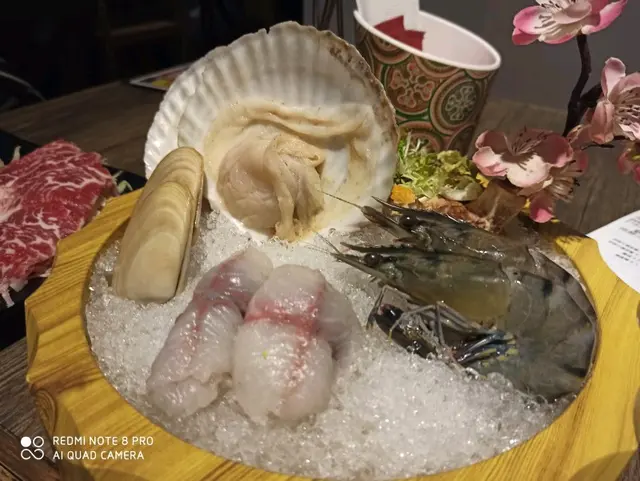 今日係附近京士柏睇完老公打球賽,就唸住近近地搵個地方打個海鮮邊爐,見到佢地個海鮮拼盤668 有6折 折完400幾抵食,我地四個人,另外再叫佐牛肉粒/牛舌/牛肉拼盤,椰子雞煲底,椰子雞湯好香好甜,雞好滑,另外仲叫佐竹笙,響鈴,蓮藕,脆肉皖魚,墨魚滑。總體黎講都好好食,海鮮好新鮮,肥牛同牛肉粒都好滑,響鈴係即炸既,最好食😋一上黎就已經冇曬,必點。四個人食佐大概1600 每個人400有找,好飽好飽。推介👍🏻