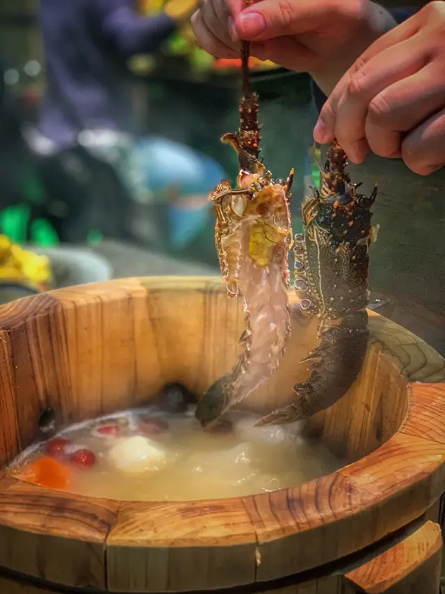 落左單店員就拎住裝住胡椒豬肚湯既木桶擺係爐上~個木桶真係好搞笑,好似做蒸身果d木桶咁~用佢黎打邊爐真係第一次!店員擺低個桶之後就解釋下個木桶既原理,仲教我地要飲啖湯先~佢一講我先為意到原來木桶入面有d小洞,一滾d湯就會係d 小洞度流出黎,店員話咁就可以過濾到d雜質同去左d油~我一試個湯~好香濃一d都唔油!一般火鍋湯底都會偏咸但呢個胡椒豬肚湯真係可以獨立當湯黎飲~胡椒味濃唔過辣,好正!係我地飲緊個湯既時候店員就將食物陸續上檯,個海鮮船一上檯我地真係嘩一聲~好大盤,D海鮮仲要好似刺身咁新鮮!急不及待淥黎試下,龍蝦肉好爽口彈牙!蠔又夠大隻啖啖肉!D蜆仲好有鮮味!太驚喜!之後再試下d丸類同其他食物,一睇就知係手打既丸,唔係出面叫貨既材料。口味仲好特別,有黑松露同芝士丸!估唔到既係除左丸類之外,原來就連d餃、炸魚皮、墨魚膠釀油炸鬼都係全部自家製!甚至連響鈴都係自己卷既!我地係度研究緊點解D炸魚皮可以咁大塊咁完整果陣店員咁岩聽到走黎同我地講的~全部都係自己手作功夫,唔怪得食落既味道咁唔同!仲有d牛肉,一睇就知係靚牛!成本應該幾貴,食落好有牛味一d雪味都冇,又冇筋又唔韌!我平時唔係好食牛既都食左好多!