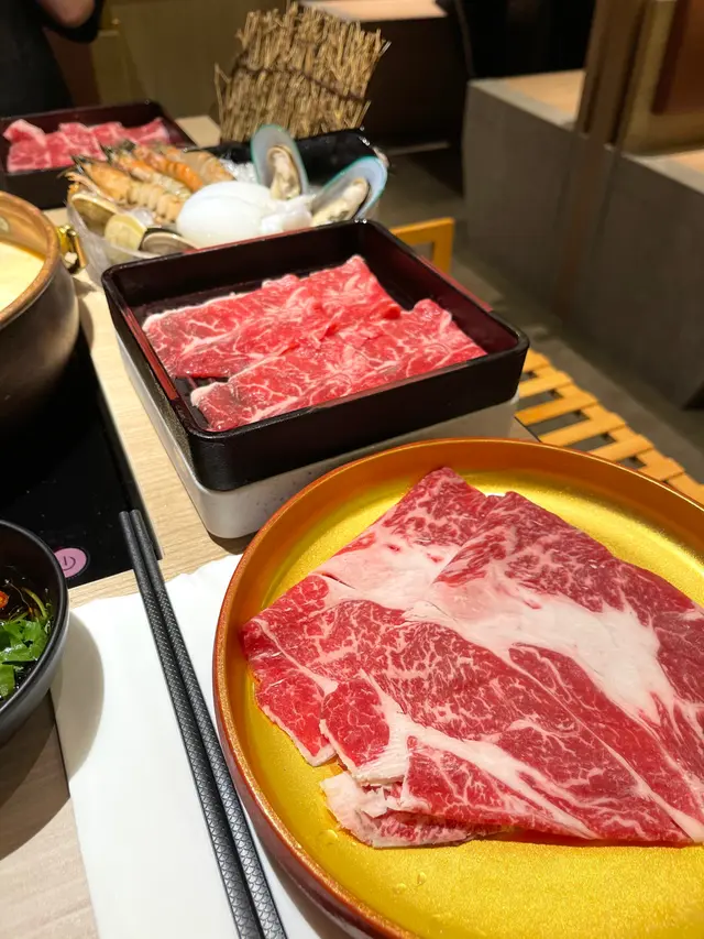 美國極黑牛三叉,美國牛板腱雖然冇和牛咁滑,但牛肉味夠濃,愈嚼愈有牛味。牛板腱帶點筋健,依然有牛味。👍🏻😋手切琵琶牛肉厚切而且不規則,嚼勁十足,牛味濃,完全唔同食法。此套餐還包括一客 「蘇澳海鮮盤」包括紐西蘭青口、海蜆、墨魚仔、牡蠣和海蝦。海蝦大大隻、蜆和蠔好鮮甜,份量啱啱好少食多滋味。另外任食的海鮮款式有:⚡️彰化白鱔片:厚切肥美,肉質好彈牙結實,必點項目👍🏻✨⚡️東港海班片: 肉質嫩,啖啖肉!⚡️台灣透抽(小魷魚): 最後都係嚟咗墨魚仔~😆台灣小食也不能錯過。⚡️厚切午餐肉:炸過特別香口😋⚡️逢甲米血糕:台灣地道小食,台式火鍋不能缺。⚡️ 台式魚餃,福建蒸餃:擺放得比較凌亂,福建燕餃有豬肉餡料,魚皮餃皮聽煙煙韌韌👍🏻⚡️芋蓉卷,魚糕包着甜甜的芋泥👍🏻刀削麵夠煙靭,炸魚皮略為鹹咗少少甜品方面有台式芋圓,可自行添加紅豆蓉。不能錯過的還有雪糕、雪條,睇真啲仲係高級品牌雪糕😍 竟然有最愛嘅咖啡味🥰 今餐超滿足!