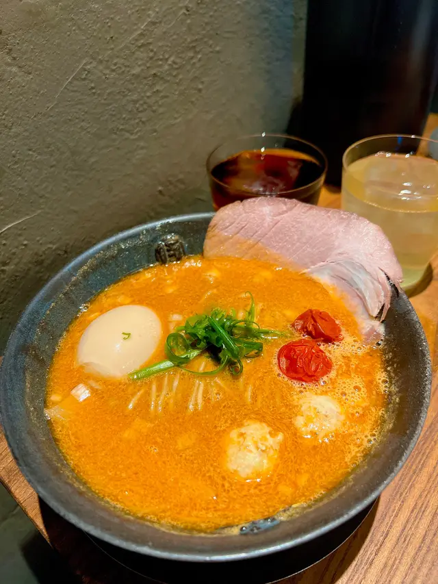 熟成雞白湯拉麵🍜 ~ 湯底稠厚富膠質,口感柔和,配上兩粒肉丸和爽彈的拉麵,使味道更為融和。