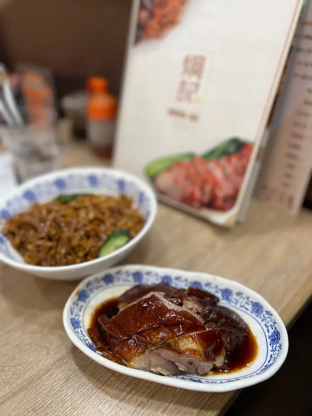 想在尖沙咀區找一家平靚正的燒味餐廳?這間炯記燒味不只價錢實惠,選擇亦十分多,有各式的燒味飯、瀬粉、米粉,還有他們的招牌太子鵝油撈麵,和多款的特色小食,當中的醬皇豬手和手撕雞都是不少客人的至愛。炯記煙燻燒鵝撈麵($68)一碗招牌太子鵝油撈麵配合招牌煙燻燒鵝,實屬最佳拍擋。撈麵每一條麵都均勻撈上鵝油和醬油,色澤均勻,鵝油的香氣四溢。燒鵝皮薄香脆,肉質鮮嫩,還帶有絲絲煙燻的香氣。麻辣手撕雞腸粉 ($42)手撕雞啖啖肉,喜歡吃辣的可以選擇麻辣味,如果吃不到辣,可以選擇鹽焗。腸粉淋了甜醬和麻醬,加上秘製麻辣醬的手撕雞,甜、麻、辣的味道十分開胃。醬皇豬手($25/兩件)經過慢煮3-4小時的醬皇豬手,皮爽而不靱,肉質腍滑而不散,骨膠原超豐富。醬皇冬菇扒生菜($22)冬菇炆得又腍又入味,配合生菜就更健康。是日例湯(免費)味道清甜的紅蘿蔔豬骨湯。咸檸七/咸檸樂(+$8)Storefront Interior Menu …Read More