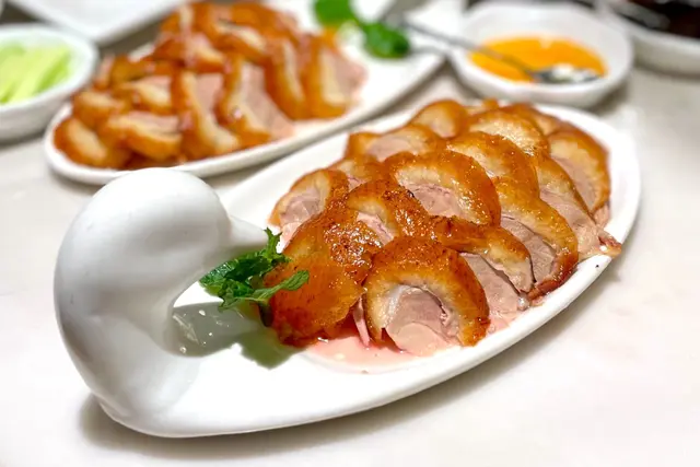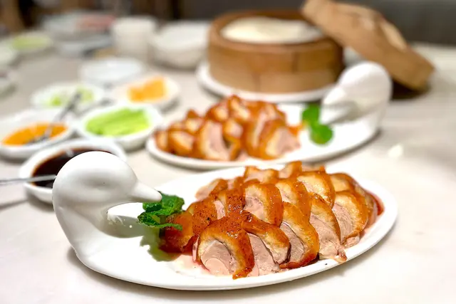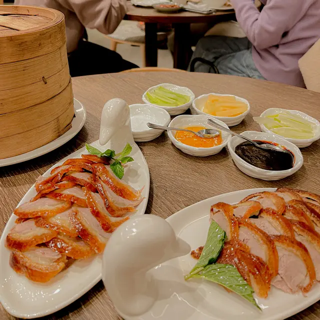 餐廳本身比較細小, 利用鏡子效果令人誤以為環境寬闊。首先我們點了一個4人餐, 另外再加了其他食物。4人餐 $1398前菜冷盤分別有花雕醉雞, 蔥油海蜇拌黃瓜, 松花皮蛋拌豆腐由於我不喜歡黃瓜, 所以這次我並沒有吃, 花雕醉雞酒味不算濃烈, 雞肉蠻滑且沒有肥膏, 味道不俗, 如果加多點杞子應該令味道更突出 🙂 豆腐十分滑溜, 加上皮蛋及其他配料一吃相當滋味, 冷盤整體很好。烤北京填鴨半隻鴨隻燒得香脆, 肉質有點粗糙, 不過我略嫌覺得皮比較少, 所以變相好吃的部份變少了, 整件事就變差了 🫠香菜鮮魚羹 / 津白雲吞湯 (2揀1)選了後者, 湯品十分清甜, 津白嫩口, 浸在湯內可謂雙重享受, 兩邊都感受到 😚 如果要挑剔的就是湯可以再熱點, 但味道火候都足夠 👍🏻黃魚燒年糕 / 風味松子魚 (2揀1)選了後者, 松子魚炸完後再加上糖醋醬汁, 魚炸得鬆脆, 甘香可口, 糖醋醬酸甜適中, 是其中一道我覺得很不錯的菜式 😊農家醬爆牛肉首先牛肉不夠鮮嫩, 正常用蔥爆過後整碟菜會十分香口惹味, 佢完全沒有這種口感 😐 整碟菜彷似大兜亂將所有配料炒在一起。金腿濃湯津白 / 乾煸四季豆 (2揀1)同樣選了後面, 平時我不太喜歡吃豆, 但這個菜一般外面都煮得入味, 拿捏得很好, 但這裡的豆明顯味道不足, 亦欠缺正常的鑊氣 😶古琴鹹肉菜炒飯 / 上海粗炒麵 (2揀1)今次選了前面, 飯雖然不是超乾身, 但勉強做到粒粒分明, 亦沒有太多油, 加了些鹹肉一起炒, 味道正常。4人餐到此為止, 下面是我們額外點的:東坡肘子 $268大概是把整隻大豬手炆了出來, 由侍應替我們切開, 肉質煮得軟腍, 醬汁不會太杰, 味道帶點濃郁, 與肥豬肉一起吃雖然邪惡但非常滋味 🤗黃金明蝦球 $208 外面加了鹹蛋再炸, 炸得鬆化, 蝦肉大大粒, 口感比較結實, 但吃下去缺乏蝦味 🫥 外面的鹹蛋黃不會太厚, 這點不錯。意大利黑醋骨 $148比起上面牛肉, 這個肉更加粗糙, 除了黑醋的酸味外就吃不到其他味道了 😵💫 唯一可幸的是它並非酸到世界盡頭 🥹 古琴酸菜魚 $288這個酸菜魚應該是繼<㕑十三老壇酸菜魚>後吃過第二難吃的酸菜魚 🫣 肉不夠鮮不夠嫩也算了, 明明叫“酸”菜魚卻只有輕微酸味, 而且亳無辣味, 只有陣陣麻辣味 🥴 究竟怎樣才可以煮成這樣?最尾的桂花糕雖然有桂花味, 但過份地甜 😓 可能是吃過最甜的桂花糕。不過有件事值得讚, 就是生日蛋糕沒有收切餅費 🤡本身看到餐廳名字, 心裡是有少許期待, 可惜食物質素未如理想 🙄 雖然好吃的食物還是存在, 但我覺得這個價錢這個質素就未能接受, 服務態度就沒有特別。…查看更多