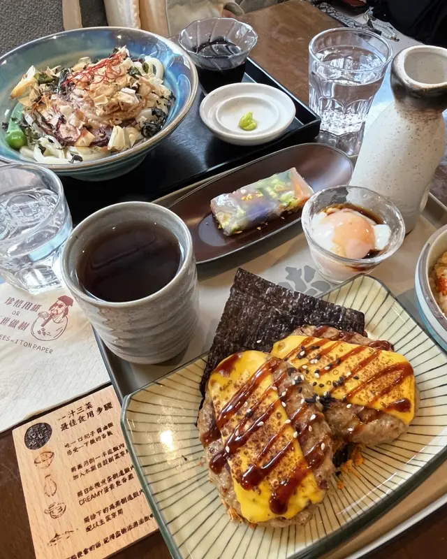—————————————————一汁三菜便當🍱分別會有一份自選主食,漬物三吃(包括芝麻醬拌牛蒡、薑絲青瓜漬、柚子蓮藕片)、日本溫泉蛋🥚、再配撒上飯素嘅飯🍚.🔹烤芝士漢堡扒伴海苔肉鬆 $150兩塊超厚漢堡扒,份量比想像中多!鋪上芝士🧀同醬汁🤭好邪惡啊!漢堡扒Juicy有牛味,肉質軟腍腍,撈飯一流🍛.🔹清酒蒲燒鰻魚 $165鰻魚好大條,肉質偏厚實,醬汁味濃視覺效果澎湃,但味道反而未有太特別🧐(正常味道,價錢就貴咗少少).🔹伯爵茶麻糬傳統班戟 $85帶淡淡伯爵茶香,🥞有少少乾同實,配返雪糕就好啲、無咁dry🍨麻糬比例比想像中少,不過都煙韌,增加口感層次🤏(生日牌係加$先有🎂).💡假期好多人排隊😂大家要有心理準備
