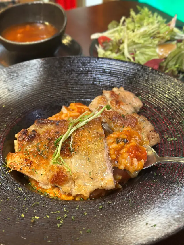 荃灣呢間日式餐廳主要行昭和風,而且好抵食,好啱簡單同朋友食個飯!烤雞肉鮮茄意大利飯:雞肉份量大,烤得啱啱好皮脆、肉質嫩滑,而蕃茄嘅甜味和酸度,與雞肉鹹香完美結合。意大利飯粒粒分明,吸收曬醬汁的精華。飯入邊仲有一啲菇菌,食落好豐富!墨西哥雞肉烤餅: 烤餅本身質地柔軟,外表烤得微焦,邊緣輕微酥脆。辣醬香辣適中,夾雜着滿滿嘅芝士,食落口感,非常豐富好滿足!水牛城雞翼: 雞翼炸得金黃酥脆,皮脆肉嫩,咬開外皮就已經見到啲啲肉質好嫩同保持到肉汁。辣醬辣味適中,易入口。明太子蟹肉薄餅:薄餅底部烤得酥脆,夾雜着大量明太子,每一啖都食到餅皮同明太子嘅口感!今次嘢飲就嗌咗Cappuccino,咖啡師真係好有心機拉返好靚…Read More