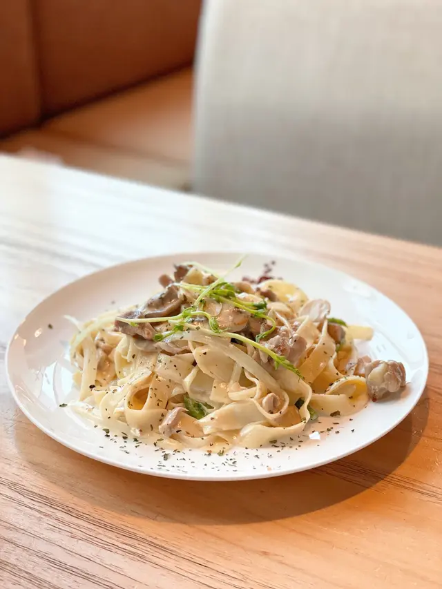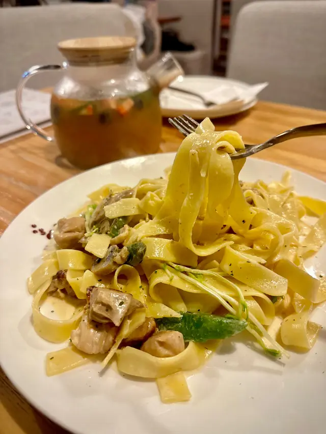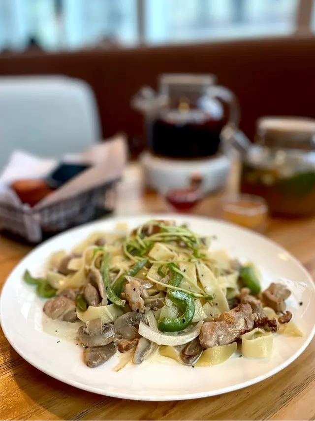 而家想約朋友食飯並非易事,難得約到好耐無見嘅朋友,偶爾都想搵個坐得耐啲嘅地方食飯吹下水。即日有位book嘅cafe唔多,所以無過多考慮就決定試呢間。烤雞蘑菇闊條麵 $82闊條麵食落未夠鹹香,即使加入咗黑椒同青椒,味道仍然略淡。不過勝在夠creamy,韌度尚可。烤雞同蘑菇表現唔錯,口感同味道都正常。不得不提擺盤,睇落都幾頹,同行朋友都一致認同似係煮完求其掉上碟。綠茶紅豆奶茶 $54頂層雖有超厚身忌廉,可惜味道完全無奶香甜味,似廉價忌廉。飲唔到奶茶茶香,只有紅豆蜜甜較可取。整體而言,大部分食物味道雖然係正常發揮,但唔太感受到餐廳係用心去經營。由餐廳設計、店員態度,以至食物質素同擺盤等,都好影響客人會唔會再次幫襯。至少今次唔太感覺到有做好餐廳嘅熱誠,希望餐廳可以再投放多啲時間去改善。…Read More