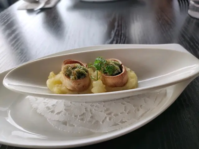 焗連殼食法國田螺,這個田螺很得意,居然連殼都吃得,原因是田螺殼是由餅做成,做得很神似,一口一啖田螺,田螺肉很有肉地,加埋田螺殼的香脆,和薯蓉一齊吃,真是人間美食!