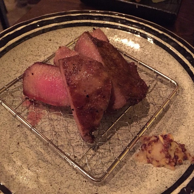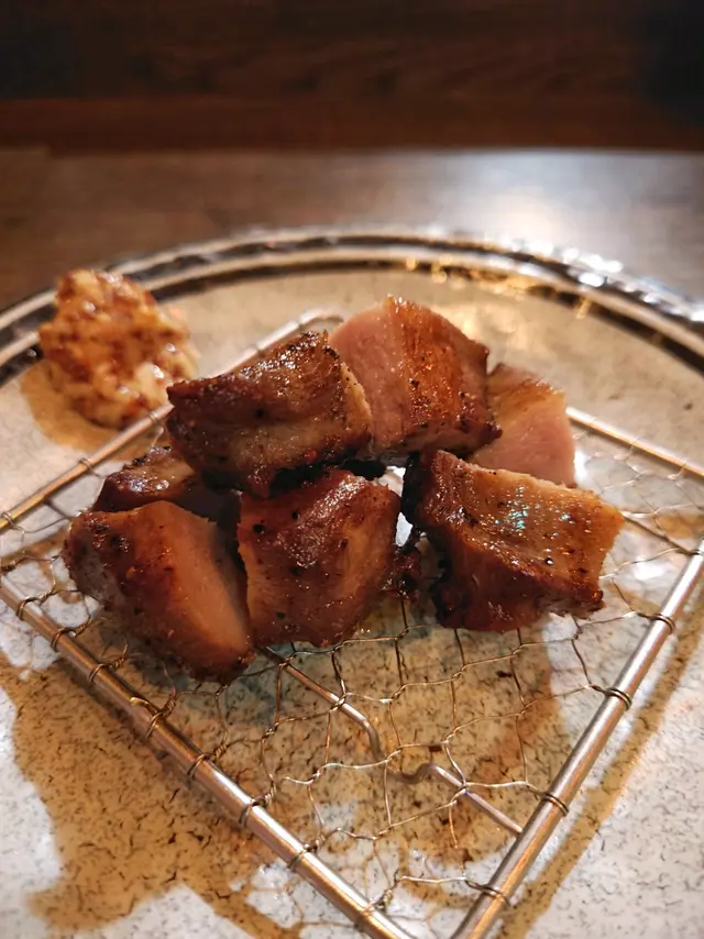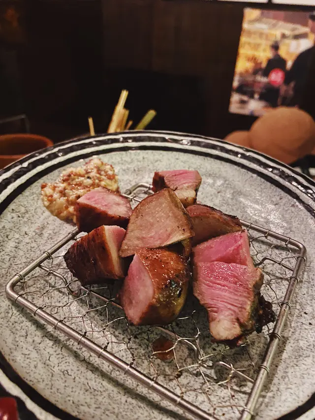 威士忌生蠔價錢唔平,但係食落又冇咩特別。就係浸酒味嘅生蠔,唔特別覺得好鮮甜。喺個杯底有一啲浸滿酒味嘅海藻,酒味超級強!冇咩特別,唔特別推介。:) 刺身沙律:粒粒刺身再加埋一啲雜菜,用微酸嘅醬油撈埋一齊。清新開胃,味道唔錯。:)七味鴨舌:滷水味再加輕微嘅辣味,都幾惹味。:)鹽燒鵪鶉腿:細細隻幾惹味,味道唔錯。:)燒牛舌:質地厚切,口感爽口彈牙。少少缺點係邊皮燒得有d 燶同乾咗少少。但係整體係夠惹味。👌🏼燒雞棒:本身對燒雞棒冇咩特別興趣,不過餐廳姐姐極力推介,咁就試吓。質地整得幾實,有少少軟骨嘅口感,係幾惹味嘅。不過又未至於好驚喜。