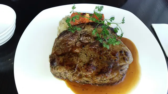 幾次嚟到呢條街都係食日式燒肉,知道好多地舖野食,但無諗到原來好多棟大廈都暗藏美食🤤 朋友食過介紹下,適逢今個星期日無出去户外活動,就去試下~一入去無諗過會有景睇😳 事前無睇網上comment,結果一見到就surprise左,無諗到棟大廈望落似普通商廈,又唔係海邊,竟然有咁大咁開揚嘅景我叫左馳名西班牙橡果級別黑毛豬,男朋友叫燒美國牛肉眼,兩個都加左海鮮拼盤同白餐酒白餐酒,好香嘅葡萄味,酒精味唔重,飲落一啲都唔覺有係酒餐包係蒜蓉包,外邊嘅皮好脆身,一咬就碎,蒜蓉味勁濃,仲見到少少蒜蓉粒係個面,絕對唔係得個樣沙律有埋鰻魚係上面😋 第一次見,平時都係得蔬果,鰻魚都好肥美,咬落有陣油香青BB嘅醬係泰式酸辣醬嘅味,酸酸甜甜勁開胃🌶 鮑魚個味似係用日本豉油浸過,啲肉好爽口彈牙。帶子就用麵豉醬浸住,食落好黏好新鮮。生蠔無半點嘅腥味,第一次用青bb醬嚟送生蠔,又幾夾喎同埋生蠔都好鮮甜。鮮蝦都點左個醬,蝦肉好結實,色水都好靚~餐湯係翠肉瓜配火腿,翠肉瓜個味道唔會好出,主要有火腿嘅鹹味,火腿個脆皮咬落好似咬粟米咁燒美國牛肉眼👍🏿 叫左五成熟,個程度啱啱好肉質幼嫩唔韌。牛肉味道濃,咬落去啲脂肪嘅油香出哂嚟,旁邊有啲薯菜同蕃茄仔減少個油膩感西班牙橡果級別黑毛豬👍🏿 外皮煎過咬落有少少脆身,肉質易咬,一咬就分開,我會形容為有啲似豬頸肉嘅肉質,而且陣豬酥味特別勁,諗起都回味🐷甜品係豆腐竹炭mousse蛋糕,成個碟擺得好靚,豆腐味幾濃,食完啱啱濃味嘅主菜,換番啲清新嘅蛋糕fresh下🍰其實最尾完全唔記得有甜品,埋單個下先醒起,所以係勁抵食,又有靚景,又有多款side dish,又有咁正嘅主菜,店員嘅服務又好好主動斟水,要多謝朋友嘅介紹❤️…Read More