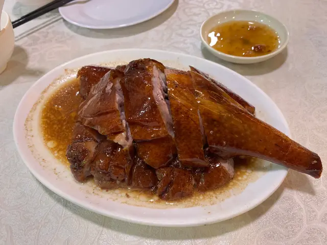 以前成日都食另外果間好出名嘅, 發覺原來呢間陳記燒鵝皮脆肉嫩! 今日天朗氣清爽,出機場之前經過深井, 入去陳記食個lunch!之前都係叫半隻,今次就叫下庄。本人鍾意食鵝胸,不過呢個下庄一樣咁好食