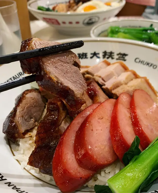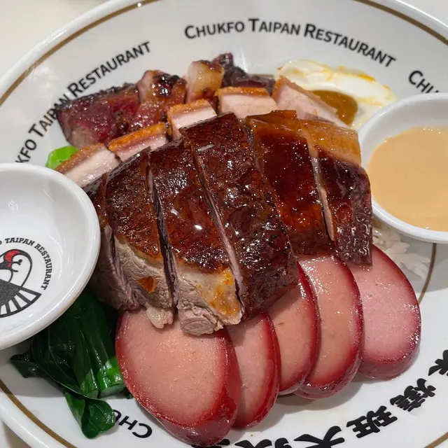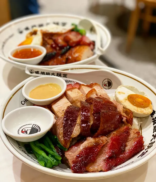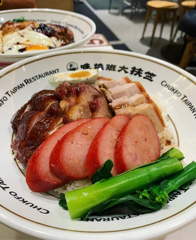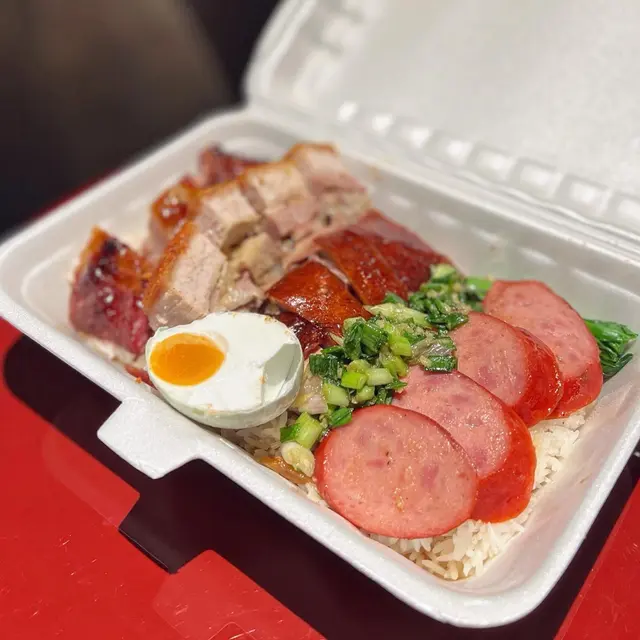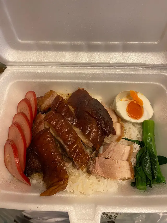 有朋自遠方來,梗係要帶朋友去食富有香港特色嘅燒味飯啦!今次就來到灣仔呢間極具人氣嘅燒味餐廳!星期日未夠6pm餐廳已經全場滿座!雖然要排一陣隊,不過好快就安排到入座🙈 聽講餐廳連平日午市都經常大排長龍,睇來亦同樣深受附近上班一族嘅歡迎啊~豉油雞+燒腩仔飯💰HK$56豉油雞嫩滑惹味,配搭埋蔥油,撈飯一流!燒腩仔好有驚喜,外皮酥脆,肉嘅部份肥瘦均勻得來又肉汁豐富,點埋自家秘製嘅芥末醬,整體感覺更加油而不膩~燒鵝五寶飯💰HK$88呢個五寶飯超豐富!有至尊古井燒鵝、銷魂叉燒王、燒腩仔、玫瑰紅腸同埋半隻鹹蛋!原來餐廳對古井燒鵝都非常講究㗎!首先會嚴選 5 斤半嘅手比雌鵝,然後再用自家製嘅陳皮醬去醃制鵝嘅內籠,最後就將古早味道完美咁呈現出來!銷魂叉燒王色澤誘人,外層略帶焦香,而且肥瘦均勻,味道甜中帶咸,令人回味無窮~是日靚湯💰+HK$6今日係老黃瓜赤小豆煲豬骨湯!老火湯味道鮮甜,仲有好多湯料添,果然係真材實料啊~餐廳用心製作每一樣食物,價錢亦相當合理,睇來呢到真係來香港必食嘅高質燒味餐廳!下次有朋友再來香港玩,一定會再帶佢哋來食啊~…查看更多