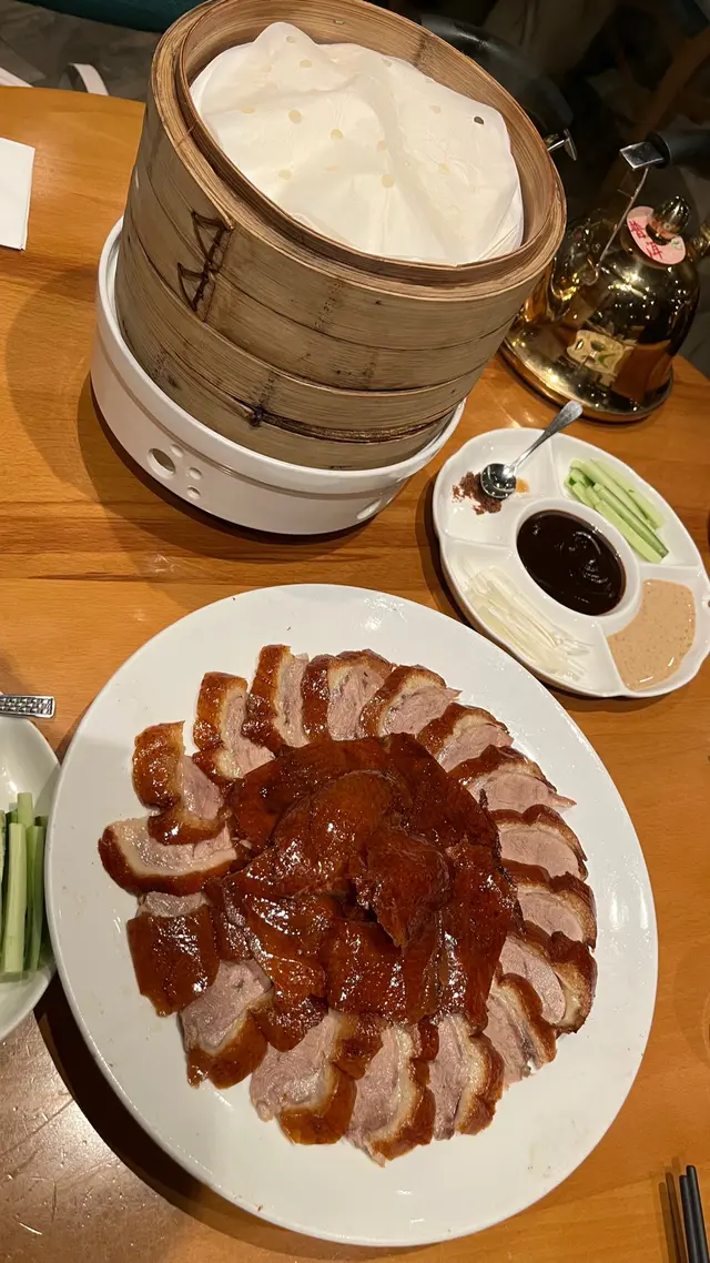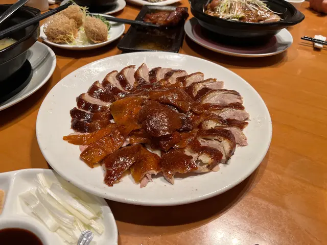 餐廳座位空間還可以。上餸速度頗快,好快就填滿咗一張枱,令到張枱好迫。🤔片皮鴨外皮比較多油分,唔脆,切得大細不一,唔整齊,賣相麻麻。味道就正正常常。另外,攞來蘸點嘅黃糖黐埋一堆,導致連埋外皮點來食時,食唔到脆脆嘅口感。薄皮份量唔多,黐埋一齊頗難分開。整體嚟講覺得係水準普通。👌🏼咕嚕肉水準okay,外皮未算冰鎮嘅爽脆硬度,但係整體味道都可以。
