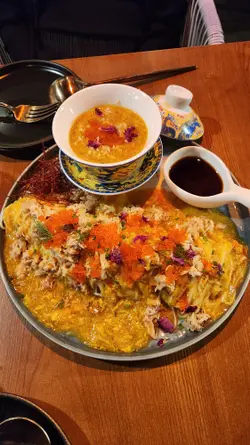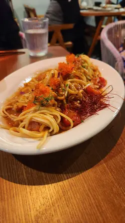 呢間cafe絕對適合覆桌!好欣賞佢環境優雅、舒適,適合放鬆聚會,加上佢嘅音樂都好有品味。前菜叫咗橄欖油帆立貝漬(HKD98),賣相吸引好靚,橄欖油同羅勒嘅風味一接觸到舌尖就強烈綻放,帆立貝新鮮彈牙,淡雅,拍得住omakasa嘅水準,加上有檸檬嘅新鮮酸味,各樣平衡得十分出色。主食 生拆蟹粉北京拉麵 (HKD298)上枱先會用女兒紅去除寒性同提升風味,食落都有淡淡酒香,加上用陳醋提鮮,陣陣酸味中和咗蟹膏嘅膩,十分出色。拉麵有彈性而且偏幼;蟹肉味濃郁、質地結實;蟹粉極度新鮮,澄黃色十分誘人;加上有蟹籽增加口感,令人想一食再食。龍蝦扁意粉 (HKD328)龍蝦汁同蕃茄嘅鮮甜互相碰撞,好有火花、唔膩;扁意粉有咬勁,要讚一讚佢用嘅龍蝦肉:好結實,啖啖蛋白質,唔會太柴。兩杯飲品:Smoothie - Giant Green (HKD78)超級新鮮、refreshing,青蘋果味出眾,有牛油果嘅順滑。Cocktail - Mango sticky rice (HKD108)面頭嘅泡沫有啤酒嘅質感,芒果味濃,有椰香,飲完好似自己置身於泰國一樣,加上酒味唔會好濃,啱哂想微醺嘅你。甜品又係無與倫比咁精彩:70% Nama Chocolate,佢出色在用麻糬皮解咗極黑朱古力嘅膩,麻糬皮有咬勁、配埋濃厚朱古力,完全滿足到我個朱古力味🤩唔會太苦又唔會太甜,加上有芝士味交融,真係會食到嘴角上揚!!強烈建議大家嚟到必試!…查看更多