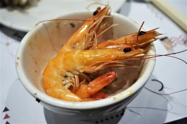 海蝦有段小插曲,初時嚟咗8隻,即喺每人分得兩隻,但餐牌標示有半斤,轉頭補番一大碟嚟。啲蝦好生猛,送到嚟有啲仲「紮紮跳」,清蒸後,沾上豉油,好鮮味,口感又爽彈,再者,唔喺蝦毛細細隻,每隻都幾大吓,好好肉。