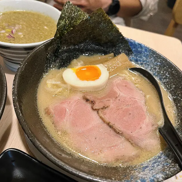 第二次過嚟食,公眾假期午餐嗰條龍比起平日嘅晚飯仲要長多一倍,等咗差唔多有一個鐘,終於輪到我食。大約1:30 p.m.左右已經冇晒限定嘅雪糕拉麵。知我哋等咗好耐出面又熱,所以一上枱唔洗1秒就已經放定好凍冰冰嘅飲品比客人,值得加分。我叫咗一碗白湯豚骨拉麵。飲咗一啖湯先,有非常濃郁嘅豬骨湯味,麵相對係幼身少少,叉燒半肥瘦偏肥,所以好多人鍾意食。另外有木耳、荀、紫菜兩塊、流心蛋半隻。撈埋一齊,食落去非常好食。另外亦叫咗一碗魚介豚骨沾麵。我係加咗$15叉燒,所以你見叉燒嘅份量比平時多。同樣都係有流心蛋半隻、荀,不過就冇紫菜。沾麵的湯底比起啱先我覺得係比較鮮甜,冇咁濃郁但係甜味重啲,兩款口味都好好食,各有千秋。而且睇得出佢份量都唔細,食完真係好飽。埋單HKD 183,如果路過見到唔駛等咁耐,一定會再嚟食。…Read More