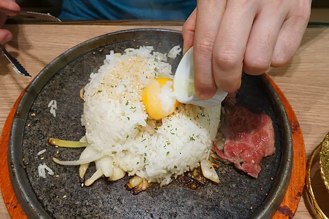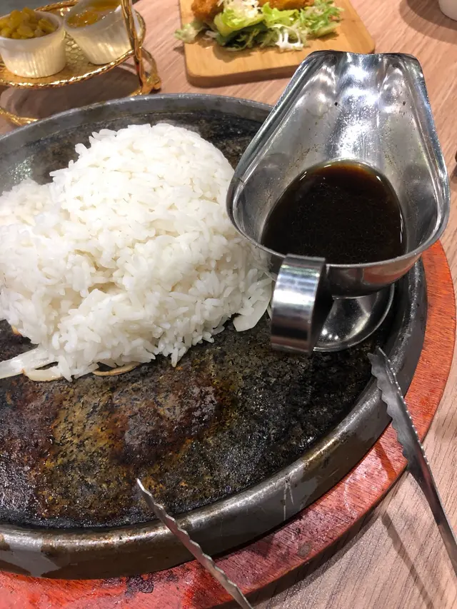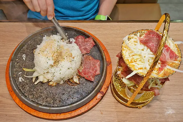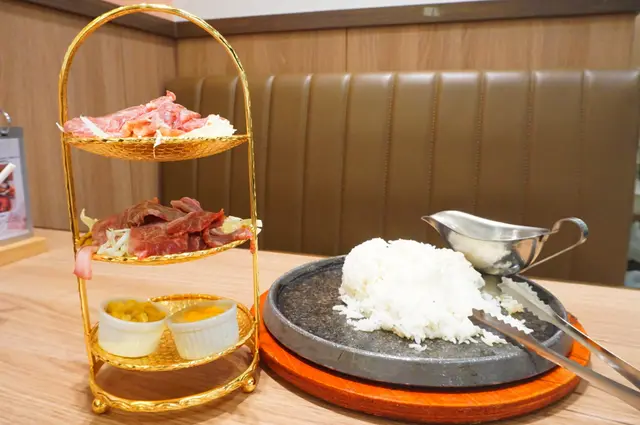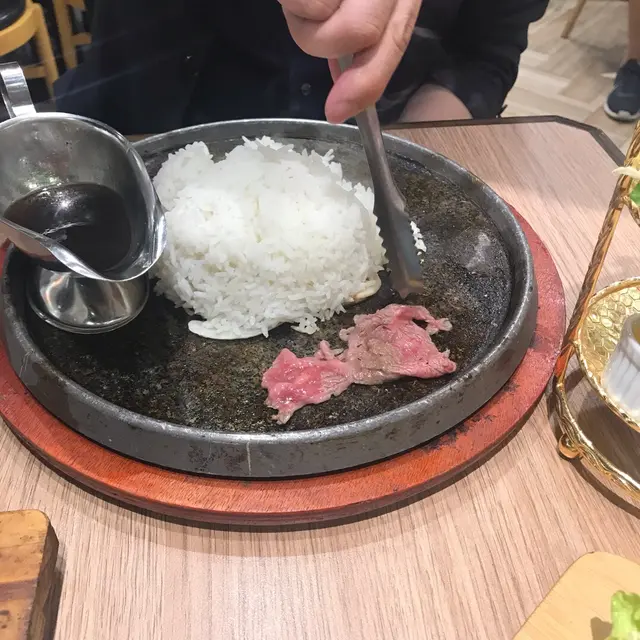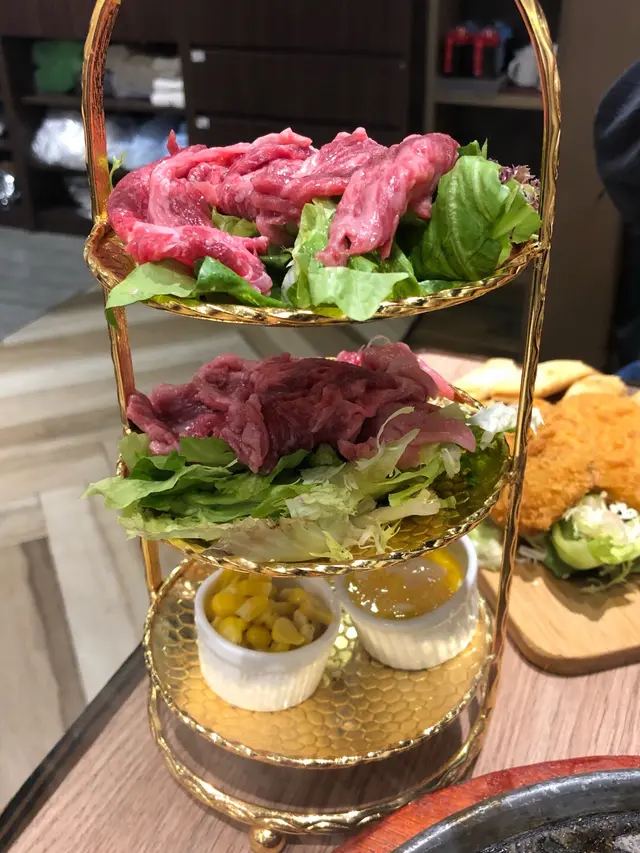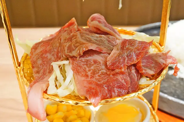 和牛的份量很豐富!100g已經有很多片。放在鐵板上