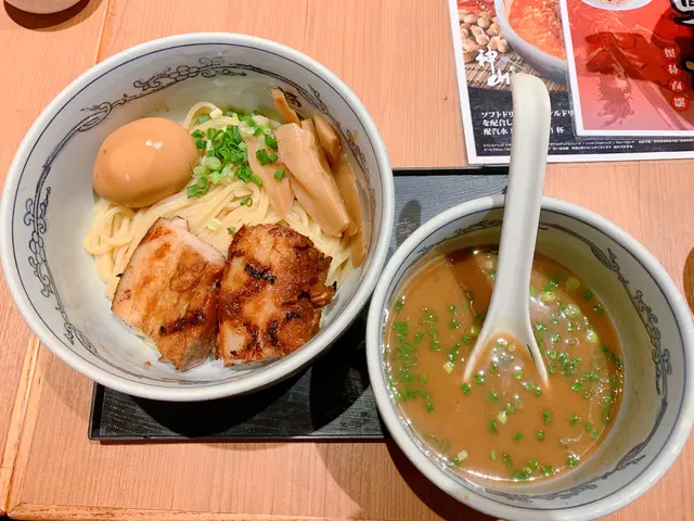 -{Apm魚介沾麵🍜}今次黎到apm到食lunch!黎到依間神山麵屋都幾多人等🤤神山沾汁麵🤤 ($89)係嘅魚介湯 湯嘅鹹香味正常不過要撈下先!麵質普通 會掛湯嘅😄個叉燒有肉汁幾高質🤩蛋有流心但唔夠醬油味👀👖褲評: 7/10成個麵都正常發揮!環境好窄 不過食到最底見到係武藏麵屋😂😂😂性價比: 8/10服務: 7.5/10環境: 8/10🚩 神山麺屋 🚩地址: 觀塘觀塘道418號創紀之城五期(apm)2樓L21B號舖#fuudjai #fuudjai日本菜 #fuudjai拉麵 #fuudjai觀塘…查看更多