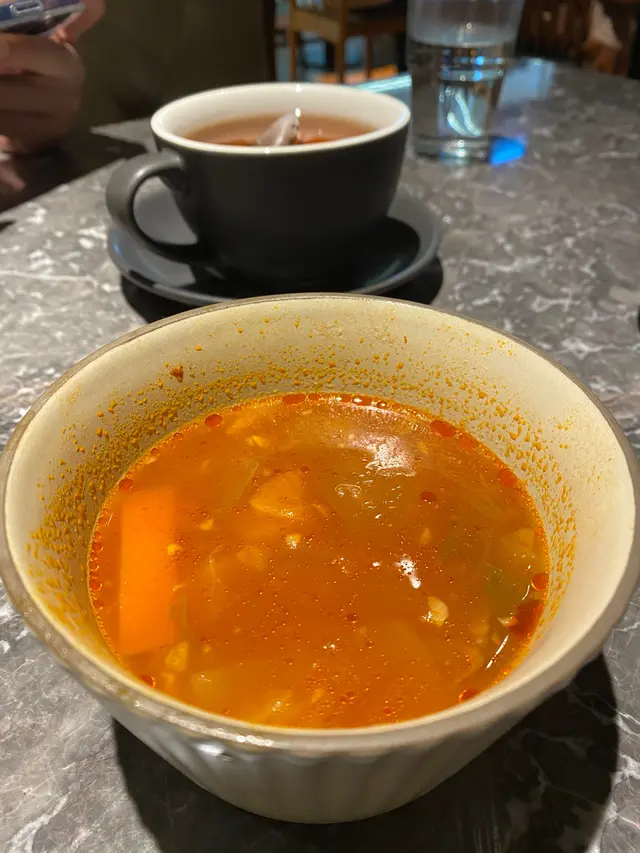 假日想去cafe往往都大排長龍,友人介紹到九龍灣企業廣場Coti,可能位置不近港鐵站,人流的確較少,唔洗限時趕住走。襲餐廳環境優雅,美食選擇多,慢慢歎下先個brunch都幾開心。是日餐湯 $0是日餐湯為羅宋湯,湯料有椰菜、紅蘿蔔及西芹,味道夠晒濃,不過有點偏咸。 龍蝦汁虎蝦意大利粉 $128虎蝦兩隻大隻,肉質結實新鮮彈牙,意大利粉份量十足,索晒龍蝦汁有濃郁蝦香,意粉較粗身,仲有翠肉瓜車厘茄少量配料,味道唔錯。雜錦海鮮併盤配龍蝦汁 $158有2隻青口、虎蝦、龍脷柳、2粒帶子,配上龍蝦汁,仲有沙律菜併碟。虎蝦大隻夠厚肉而且去埋蝦腸,帶子煎過唔會太生,青口肉不算大每人一粒淺嘗而已。提拉米蘇窩夫 $88窩夫2片,好香牛油味,質地少少煙韌。旁邊有一杯timramisu,好香濃的咖啡味,食晒成杯都唔覺得好甜,底部比較稀,用窩夫沾黎食一流。 是日精選蛋糕 $32心思思點埋是日精選的芝士蛋糕,它不是紐約芝士般濃郁較實的那種,淡淡芝士較易入口,沒有太膩的感覺。 奶醬啡 $48唔係度度有奶醬啡供應,心林會唔會好甜呢,幸好擔心是多餘的,鮮奶、花生醬同咖啡既份量剛好,杯邊仲有花生碎增加層次,奶醬啡只限熱飲供應,如果有凍選擇就好了。 提拉米蘇咖啡 $48平時外面飲的提拉米蘇咖啡會比較甜,呢度比較重咖啡味,飲晒成杯唔會有漏嘅感覺。…查看更多