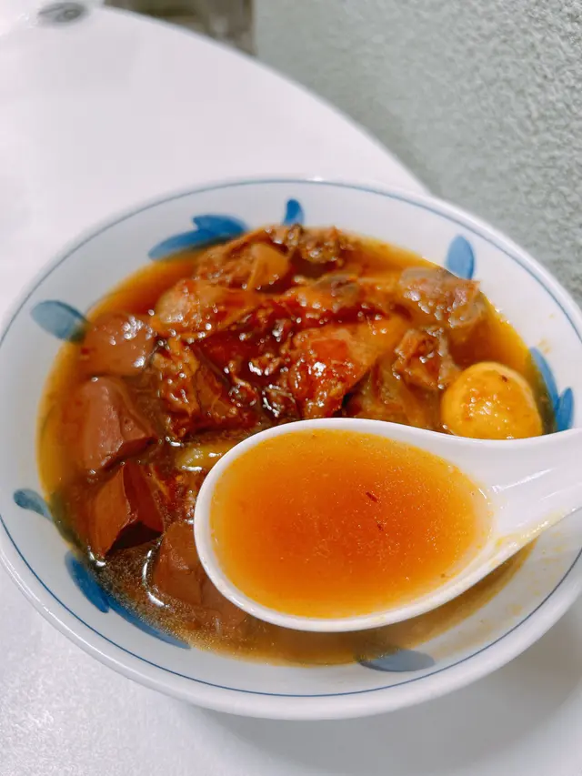 🍢咖喱四寶 - 魚蛋 │ 魷魚 │ 牛腩 │ 牛柏葉 $59咖喱汁好香濃😍香辣味道剛剛好,魚蛋超Q彈,咬落去很有嚼勁;魷魚鮮嫩多汁,完全冇腥味👍🏻牛腩炆得軟腍入味,牛柏葉則入口爽脆,每樣食材都吸滿咖喱嘅香氣~🔥必食厚叉燒 (半例) $39厚叉燒果然名不虛傳,絕對係必點👍🏻肥瘦均勻,一咬就咬得開完全唔鞋,甜豉油塗得均勻又入味,半例$39嚟講份量很ok😋🥬生菜魚肉 $30魚肉彈牙,搭配生菜加上麻油調味唔錯~🐟極品炸魚皮 $18外皮炸得酥脆,一咬落去脆卜卜嘅聲音超療癒🤩浸一浸店家嘅黃金雞湯再食,味道更加正呀!🍜自選車仔麵 $68↪油麵$12 │ 豬紅$12 │ 豬大腸$15 │ 炸有魷魚的魷魚丸$12 │ 芥末貢丸$12 │ 牛腩汁 │ 秘製黃金雞湯 +$5呢碗自選車仔麵完全係個人嘅夢幻組合✨油麵煮得Q彈有咬口;豬紅軟嫩鮮香;炸有魷魚的魷魚丸真材實料,咬到粒粒魷魚,鮮味超juicy😍芥末貢丸帶點微辣,香氣撲鼻,幾過癮🤣豬大腸軟軟的,完全唔腥;湯底選了牛腩汁+秘製黃金雞湯,雞湯清甜又鮮美,混合牛腩汁好夾,差啲飲哂成碗湯,推薦!🥰🍜自選車仔麵 $56↪油麵$12 │ 魚腐$12 │ 滷水蛋$12 │ 滷水牛腱$15 │ 牛腩汁 │ 秘製黃金雞湯 +$5另一碗自選車仔麵都係叫咗油麵,魚腐軟嫩又有魚香;滷水蛋滷得好入味;滷水牛腱軟嫩多汁,滿滿肉香😍湯底都係牛腩汁+秘製黃金雞湯,濃郁跟清甜嘅碰撞,食到最後都不會膩👍🏻🥤自家製石斛竹蔗茅根水 $10☕熱菜蜜樽裝竹蔗茅根水清涼解渴,甜度不高,熱菜蜜香甜解膩,完美ending~總結:喺尖沙咀食車仔麵又多個選擇,想encore佢個黃金雞湯!…查看更多