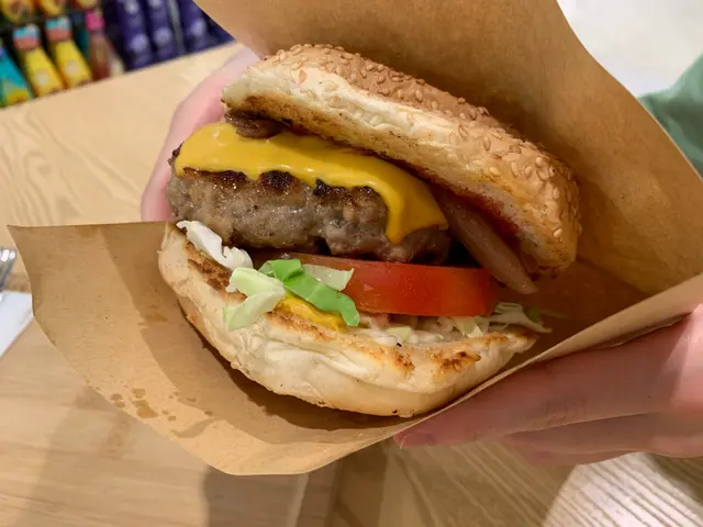 個burger係即叫即整,超級足料,講緊係大過一個成年男士嘅手(拎起都好重手)比起某間M字頭Burger,真係講緊差唔多兩至三倍嘅餡料