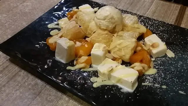 驚喜嘅係芒果法式杏仁酥,原本以為份量會偏少,點知佢隨左芒果同雪糕,重有大量微熱嘅杏仁酥同雪葩(?)舖滿一碟,淋上芒果慕絲,滿足感十足!一個人食略多,兩個人食啱啱好!極之推薦!隨左食物,店員姐姐真係好熱情!同佢傾足全程,真係越傾越開心,無諗過食個甜品都咁有人情味!我地遲d就返嚟幫襯呀!
