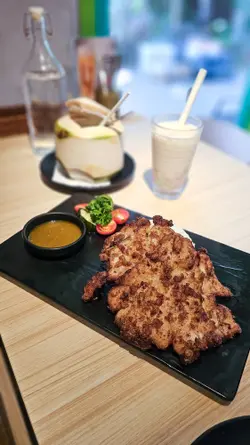 早排去咗大圍食泰菜 ,菜式即叫即做,環境清雅舒適主菜叫咗素菜濕炒河,素菜新鮮,配汁味道唔錯,份量十足!仲有大大塊碳燒豬扒配白飯,可以揀蔥油或轉泰式辣汁飲品分別揀咗椰青同珍多冰,椰青夠曬大個,夠曬冰涼,啱曬要嚟降下溫!甜品有自家製芒果紫糯米,大塊芒果加上軟綿嘅椰汁紫糯米飯,有口感又夠曬滿足~整體而言,價錢合理,性價比高,除素菜濕炒河,也有不少其他素食可以選擇,例如多款泰式炒菜、素春卷,青木瓜沙律等,適合素食人士#SandyFoodies #Food #泰國菜 #Thai #ThaiFood #素菜 #芒果糯米飯 #大圍 #泰中意 …Read More
