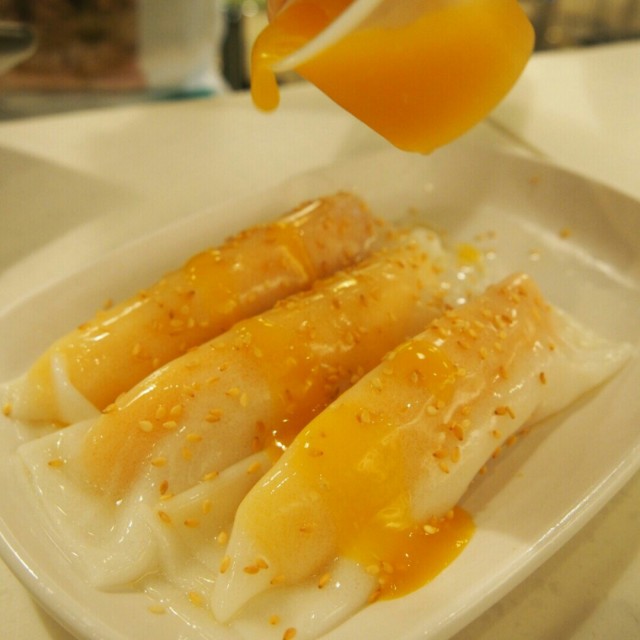 首先送上嘅係*芒果腸粉*,晶瑩通透,灑上炒香嘅白芝麻,賣相眞係幾可亂真~ 淋上香濃嘅芒果汁,迫不及待要試食~