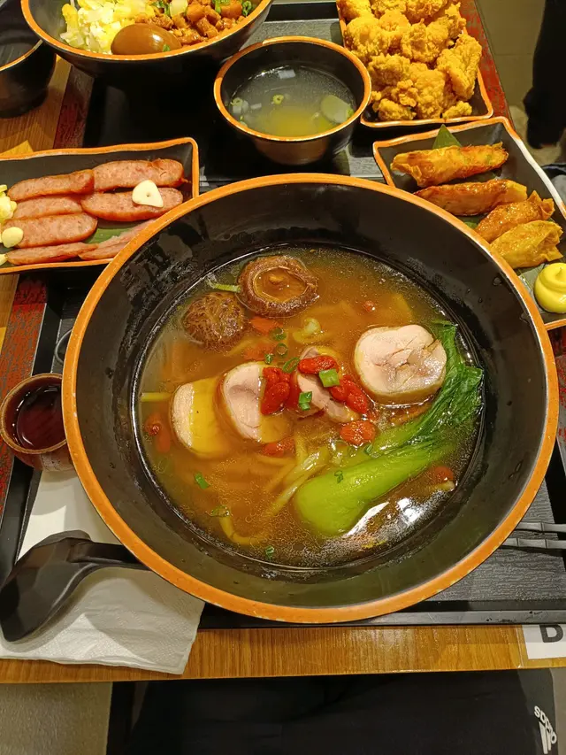 🐥花雕麻油雞湯麵好香濃嘅香菇味配埋花雕酒感覺好順口,湯飲多多都無味精嘅口渴感。麵好滑身,吸收咗啲充滿香菇味嘅花雕湯。🐖豚肉生薑燒飯豚肉同生薑味道配合得好好。混埋半熟蛋,超開胃。豚肉無燒得過乾,過硬。豚肉切得薄薄,燒汁入味,肉質溶化。🐥滷雞翼滷得好入味,鬆化嘅雞肉,入口啖啖肉,好正!🌭烤台灣香腸脆脆香腸皮,肉嘅口感堅實,唔咸午餐想有杯嘢飲?只要加$14 就可以選擇一杯$28以下嘅飲品🧋飲品嘅選擇都幾多,由奶茶到冷泡茶都有…Read More