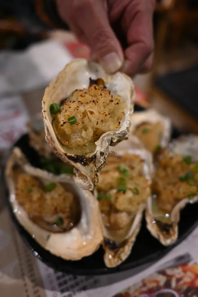 重慶雞煲(半隻)肉質緊實不柴,醬汁完全滲進入肉。今次揀左bb辣,辣中帶鮮,麻中帶香。鍋底洋蔥特別出色,洋蔥燉得好爽甜。日本扇貝保留左扇貝原本嘅鮮甜,加入雞煲嘅調味後,更加滋味,扇貝肉彈嫩又鮮甜。蒜蓉燒生蠔而家做緊優惠,$10一隻咋,仲要係處理得好乾淨,無沙。一咬落去,生蠔肉滑嫩到好似布丁咁,蒜蓉咸香完全無蓋過生蠔本身嘅鮮甜。黑毛豬腩片油脂香濃,腩片新鮮,肥瘦比例均勻,軟骨帶嚼勁,瘦肉部分鮮嫩多汁,淡淡肉香。椒鹽鴨血以前覺得鴨血只係可以用係火鍋,原來椒鹽做法咁正。炸到金黃,簡單椒鹽調味,滑嫩到似豆腐,又完全無怪味!…Read More