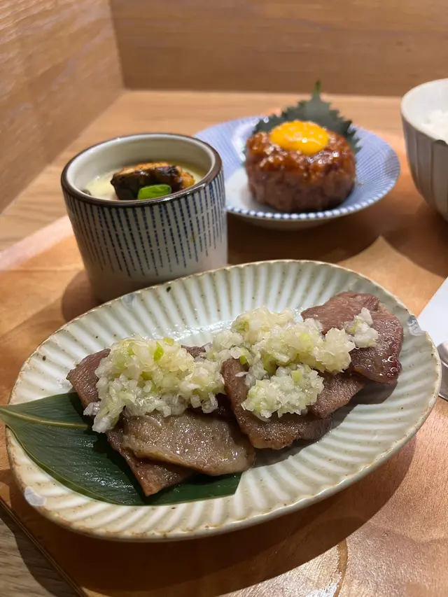 之前朋友介紹要去試,一直bookmark左都未有機會去食。平時路過都見有好多人等位,今日好好彩等咗4張枱就入得。漬物/味噌湯$8漬物咸中帶酸,好醒胃。味噌湯入面都有好多料,有豆腐、南瓜同菇。醬油蛋飯 $22醬油蛋醃製得好好,吉穿蛋黃然後慢慢流出黎既感覺真係好治癒~蛋黃口感綿滑味道濃厚,很適合撈飯!明太子飯$22明太子份量好充足,微微嘅辛辣加咸香,用黎配白飯一流!牛肉壽喜燒$48牛肉壽喜燒感覺似超市買番黎既現成貨,味道唔差但牛肉好乾同好咸,差左啲誠意月見博多地雞團子$48雞團子相對比較特別,賣相很好,中間有粒生蛋黃,雞團子外圍煎到有點脆,相當可口。蔥燒厚切牛舌$34呢個一上台已經聞到好香蔥蒜味,牛舌入口爽彈,絕對唔會燒過火又乾又韌,肉汁鎖住左,必點推介!茶碗蒸$28蒸蛋嫩滑,有鰻魚、蝦等材料,味道正常。蒜蔥燒牛肩肉卷$45牛肩肉味道似用燒汁煎過,味道略甜,蒜味就唔係好覺,但肉質都算嫩無根,不過不失啦!蜜柑白玉$30賣相好日式,入面有蜜柑、紅豆、白玉、綠茶凍同寒天凍,配黑糖汁,口感豐富。米気雪糕$28呢個雪糕都好大球,一啲都唔吝嗇!第一啖食落好特別,既甜甜又有淡淡米香,上面仲有少少脆米,口感更有層次,推介一定要必試!…Read More