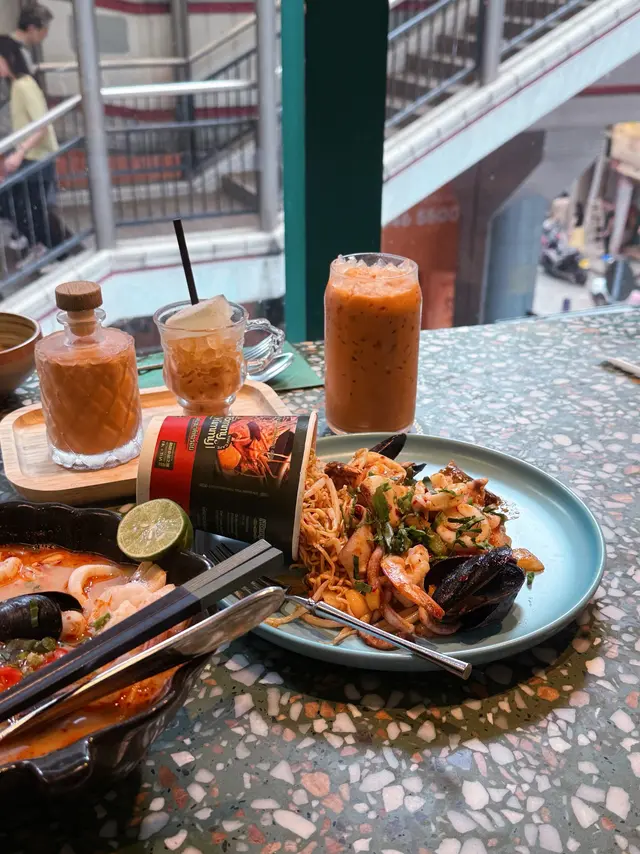 🥢虎蝦海鮮混亂杯麵 $148本身諗住都係gimmick嘢無咩特別 但見到係人氣no.1而且配搭都係我鐘意嘅就嗌咗嚟試試😗麵底炒得好好 調味均勻之餘濕潤程度啱啱好 有唔少辣椒碎但其實唔辣der配料方面有好多海鮮 4隻青口連殼 6隻爽口大蝦同埋大量魷魚圈同埋鬚鬚👑當之無愧No.1推薦!👑🍍泰式菠蘿雞肉炒飯 $108呢款就正正常常啦 飯底炒得都乾身但調味就無特別惹味跟餐都加配咗一隻雞翼 香口少油🔥海鮮冬陰功湯麵 $128呢款嘅海鮮同樣係蝦 青口同埋魷魚調味酸辣適中 不過就略顯上枱時湯底已經唔太熱 扣咗啲分。🍧芒果乳酪疊疊冰 $118另一個吸引我哋嚟嘅餐點😋旁邊嘅黃色磚其實係芒果酸奶冰磚 入口奶滑似食緊雪糕咁下面係芒果綿綿冰包住中間嘅椰子雪糕 整體偏奶感但唔會太甜👌🏻☕️泰奶Tiramisu $68呢款應該係全餐最normal嘅一款🥲佢應該係想行一個比較創新風格嘅tiramisu傳統會將手指餅提前浸泡咖啡液再鋪一層但呢款就將原條手指餅放咗喺面 所以層次口感方面就比較單一一啖不落去只有忌廉狀嘅嘢 就係mascarpone cheese 底層嘅泰奶忌廉 同埋面頭嘅可可粉旁邊都會配翻個濃稠嘅泰奶醬俾你我哋齋食咗一啖 係帶茶葉甘味 幾乎0甜味…Read More