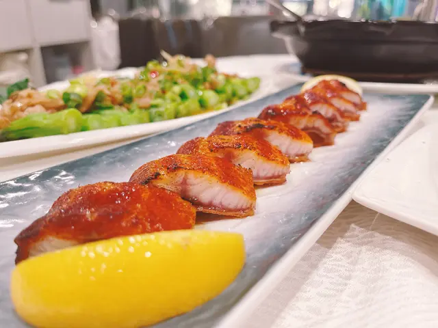 黑松露燒鵝另一個招牌菜,食落唔係非常濃烈嘅黑松露味,係帶淡淡嘅黑松露香,黑松露味道唔會好霸道。燒鵝比平時食開嘅燒鵝味道淡一啲,可能咁樣會更突出黑松露味,都幾特別又好味嘅。不過燒鵝本身就比較多肥膏。🤔即燒乳豬樓下有玻璃比你睇到伙計親手喺度明火燒乳豬,咁特別梗係要點下。但係食落又冇咩特別,乳豬皮同肉中間有肥膏,肉嘅味道比較淡。普通水平。💯