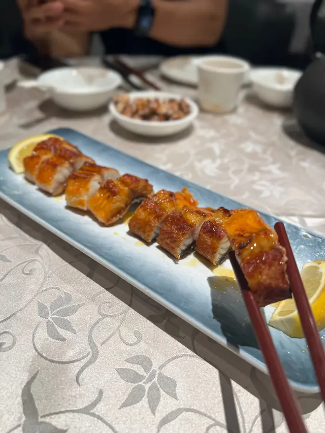 蜜汁脆燒鱔符合預期嘅味道。👌🏼百花炸釀松葉蟹鉗超級大嚿!味道同平時酒樓食嗰啲差唔多。