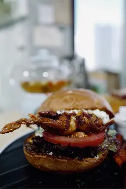 窗邊座既高木枱位, 可以俯瞰九龍公園, 純白色系配木枱再加啲植物, 感覺好舒服😌~✨軟殼蟹🦀漢堡配𝚂𝚑𝚑𝚑他他醬 💰98💫評分: 6.9/10📝嗰包微微烘過, 脆脆地, 有淡淡嘅牛油🧈香, 不過軟殼蟹唔太脆, 有啲失望🥺𝕊𝕙𝕙𝕙 ℂ𝕒𝕗𝕖 & 𝕊𝕥𝕦𝕕𝕚𝕠📍尖沙咀海防道38-40號中達大廈11樓(尖沙咀🚇A1 出口行2分鐘就到)💫評分: 7.5/10💬坐到高木枱打卡一流🥰😍不過假期有啲多人所以都唔坐得耐, 我其他朋友叫嗰啲嘢食都ok😋不過我個burger🍔就麻麻🥺…Read More